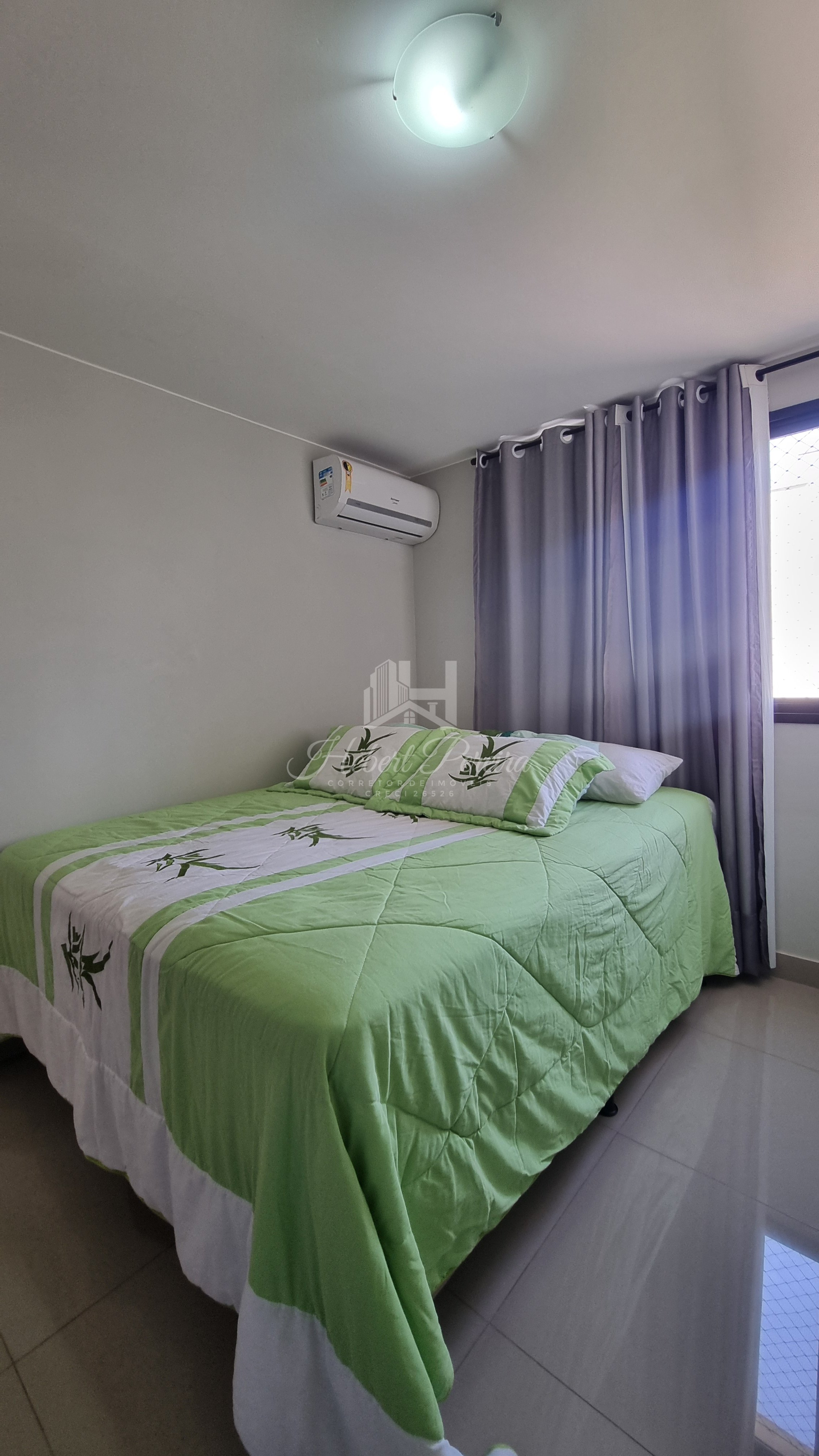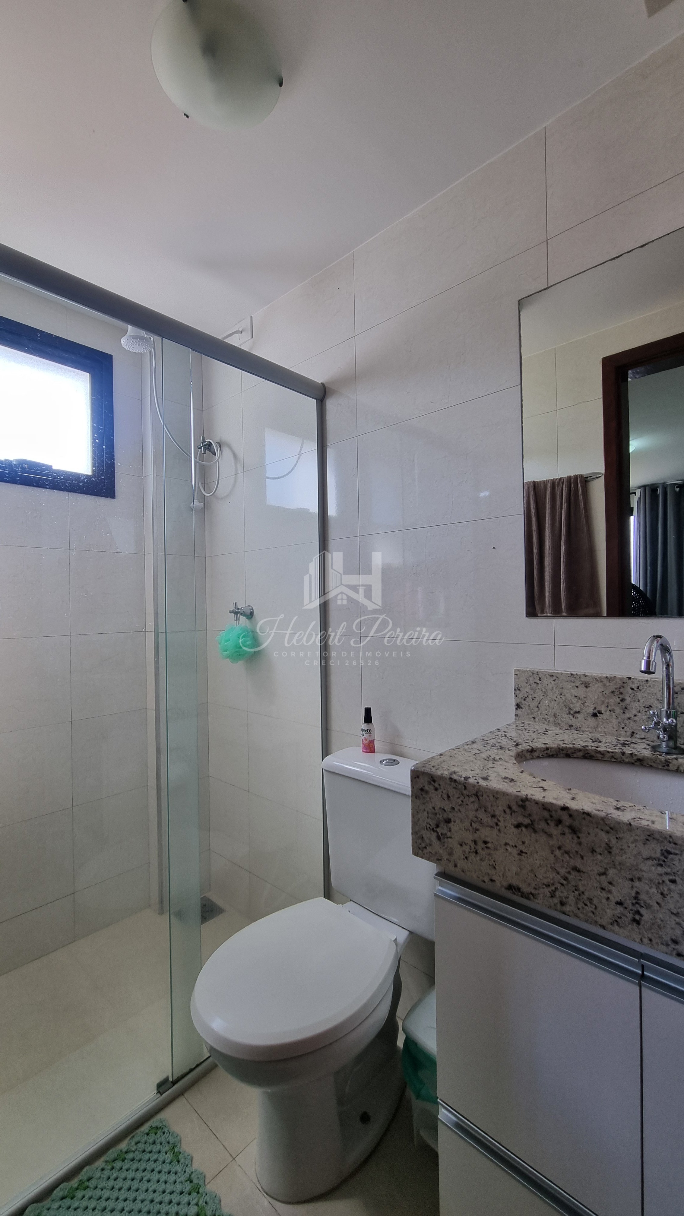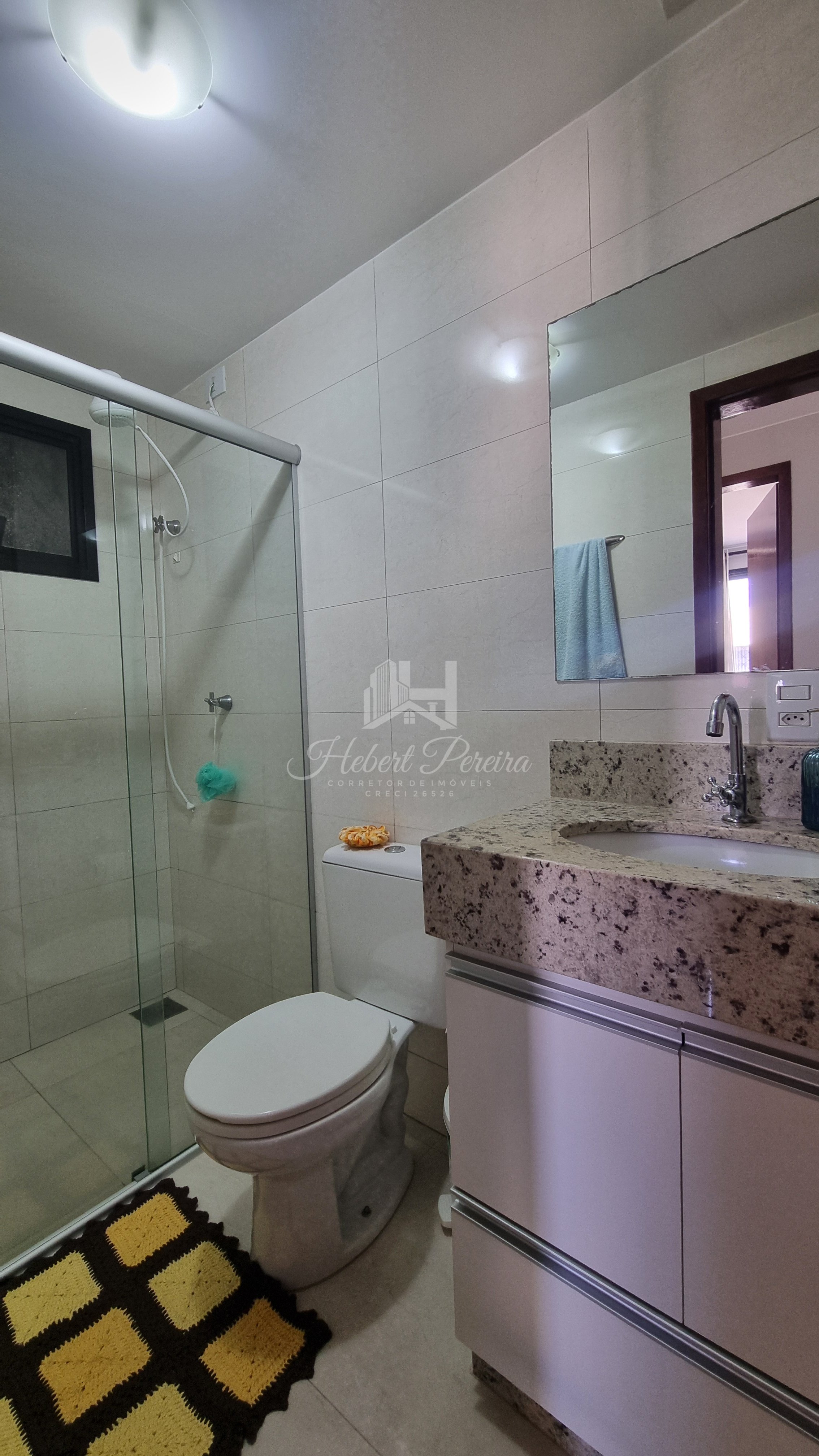 Apartamento espaço e bem ventilado, ar condicionado na sala e nos dois quartos, piso em porcelanato e banheiros com armários.