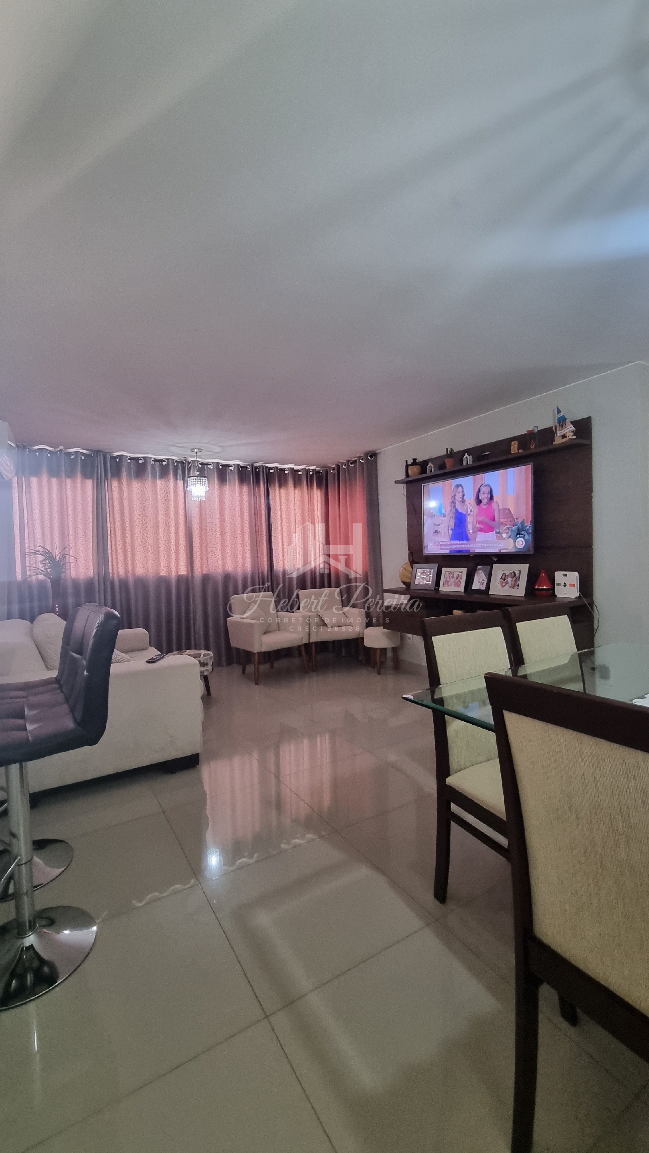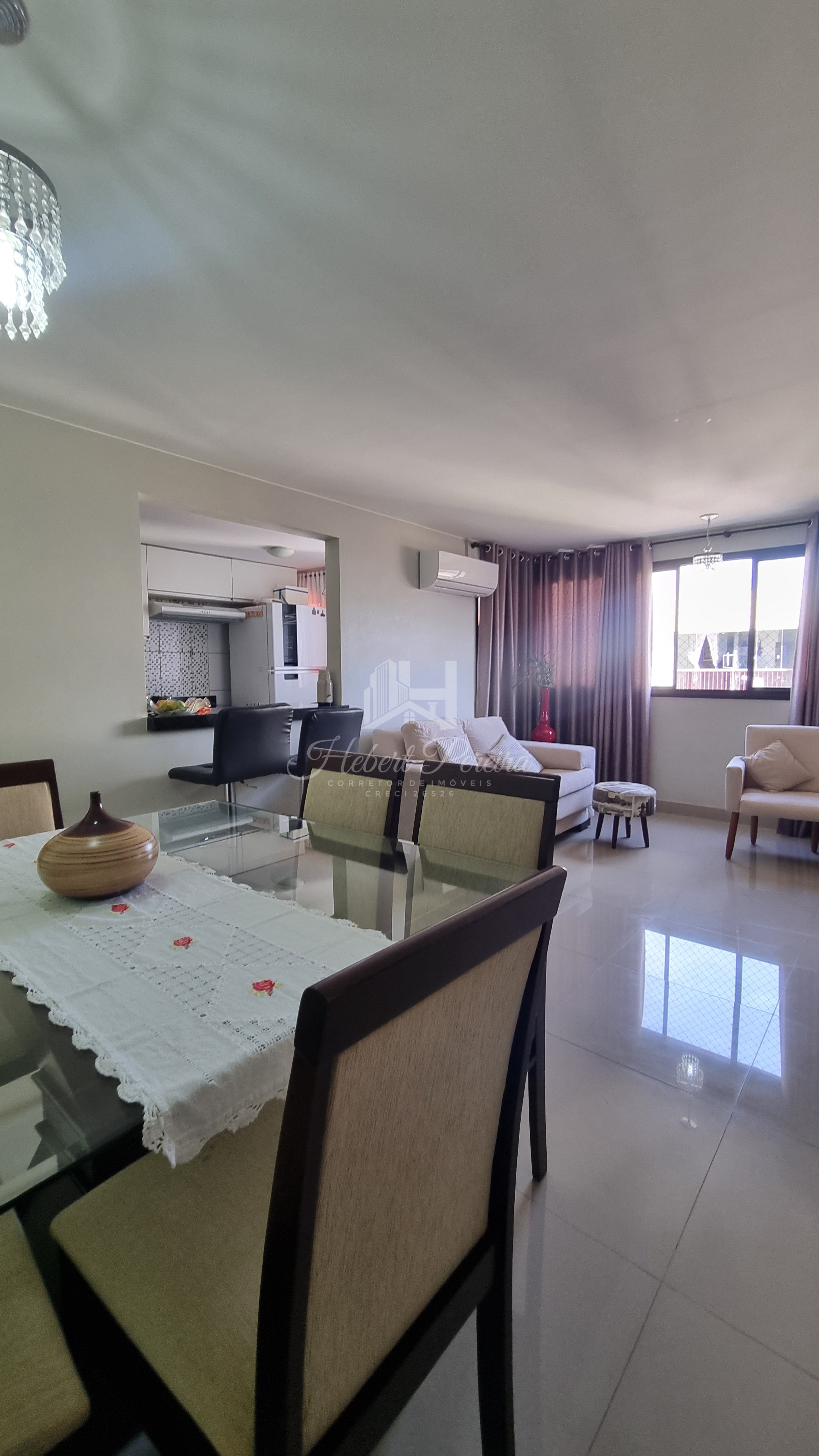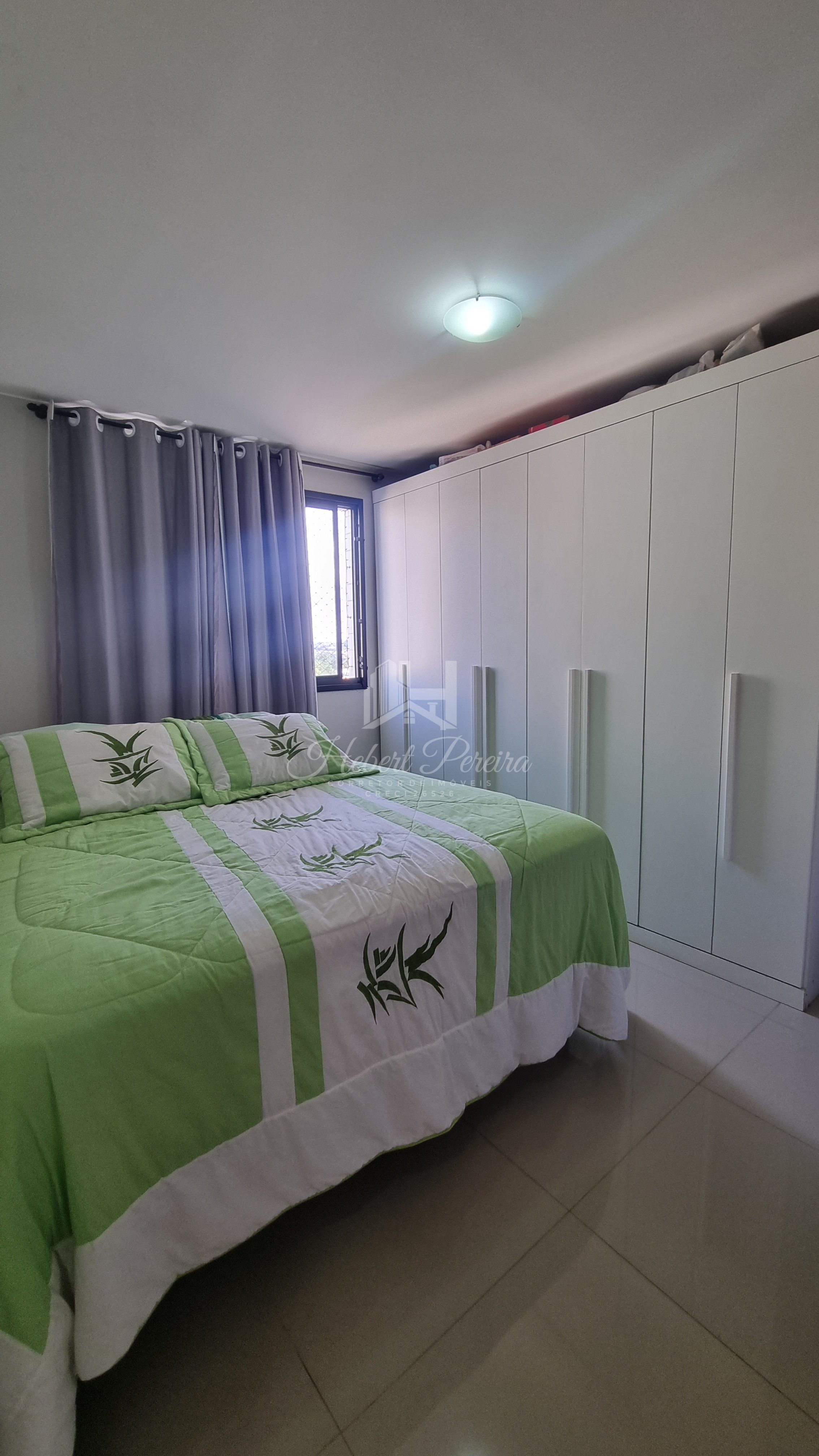 Apartamento espaço e bem ventilado, ar condicionado na sala e nos dois quartos, piso em porcelanato e banheiros com armários.