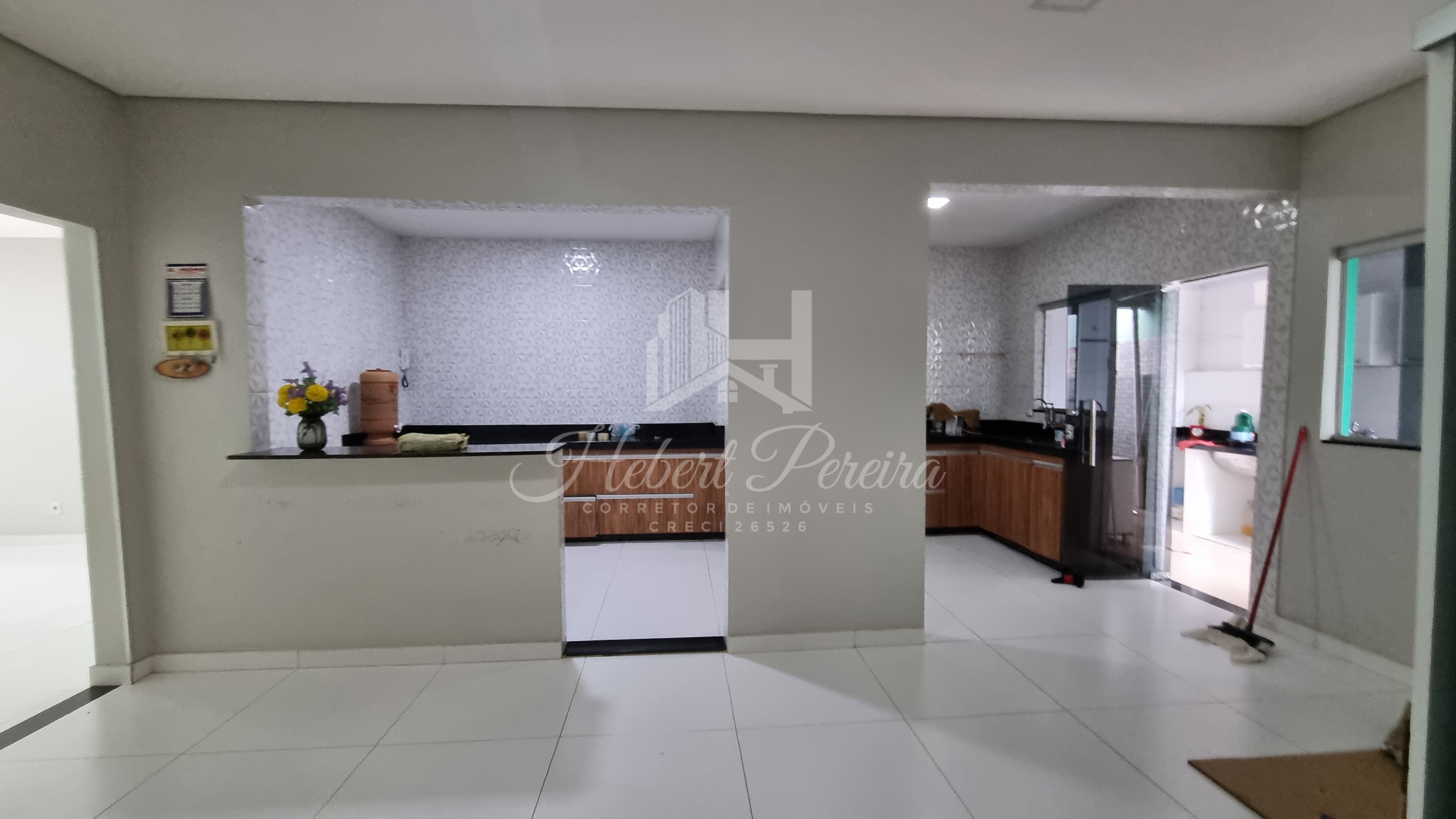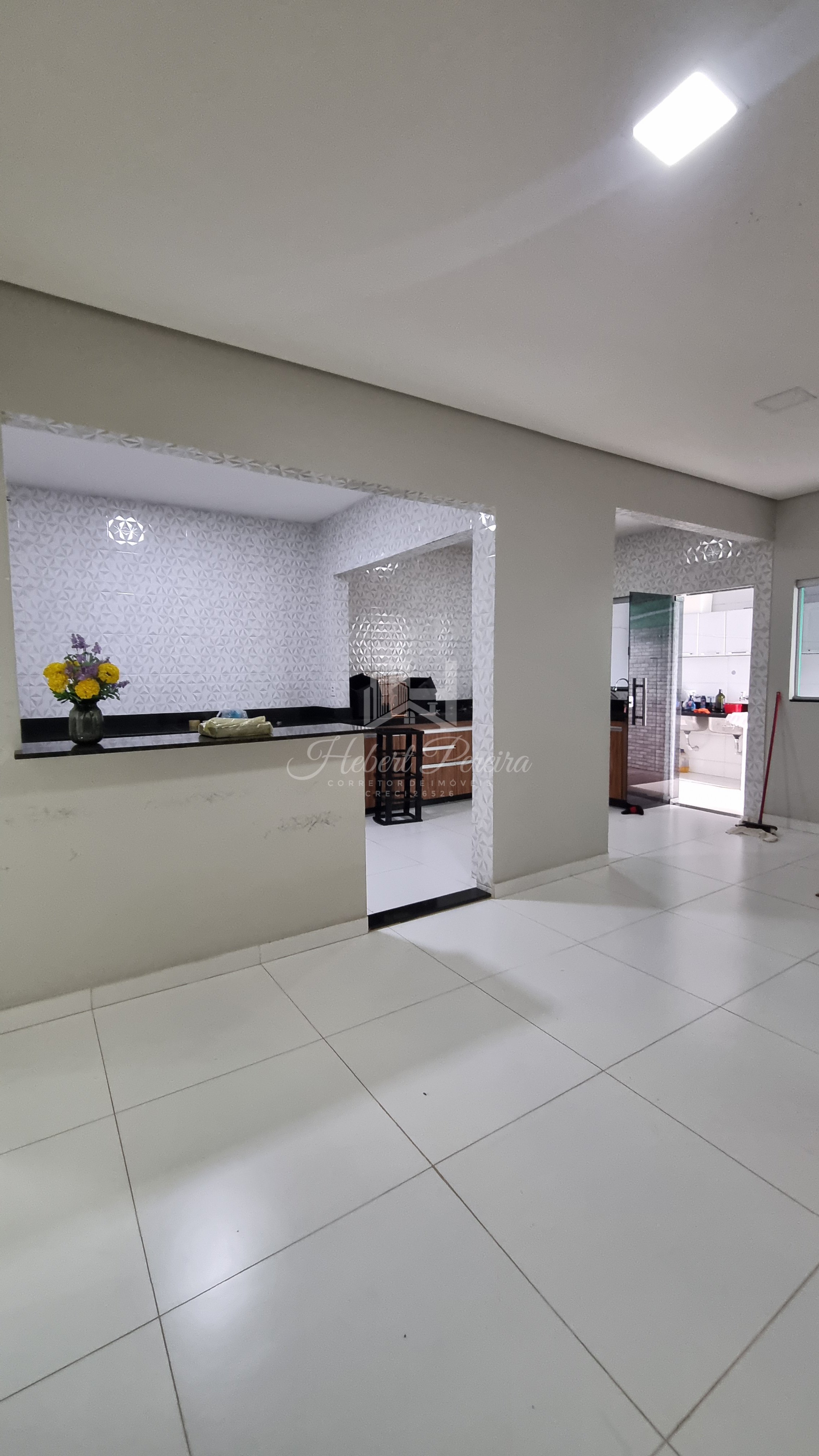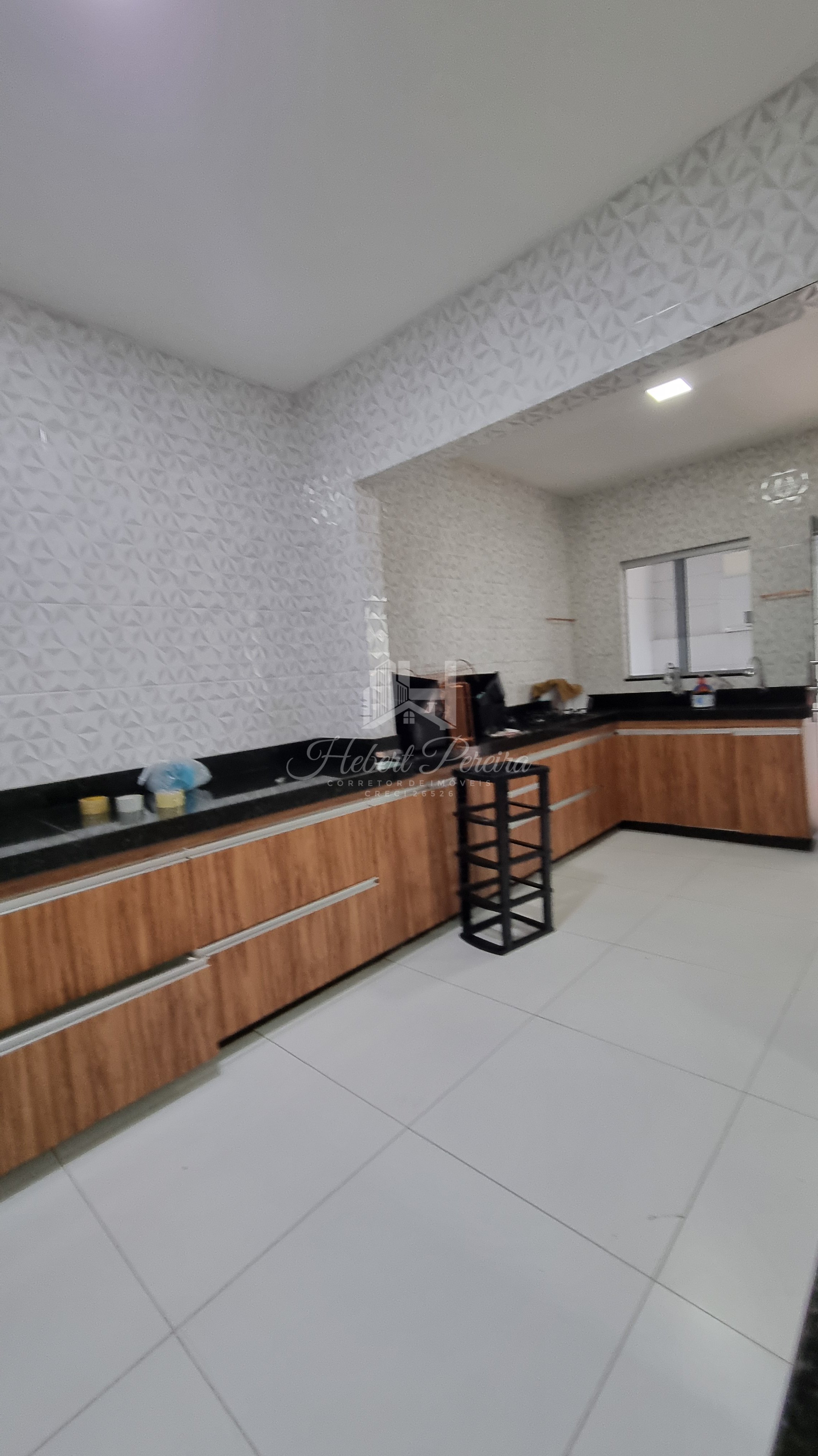 A casa e toda na laje sendo três quartos e duas suítes, cozinha com armários planejados e bancada integrada a sala de jantar e sala de tv, quartos amplos e ventilados, projeto de iluminação e piso porcelanato, varanda frontal e espaço livre para um projeto com piscina.
