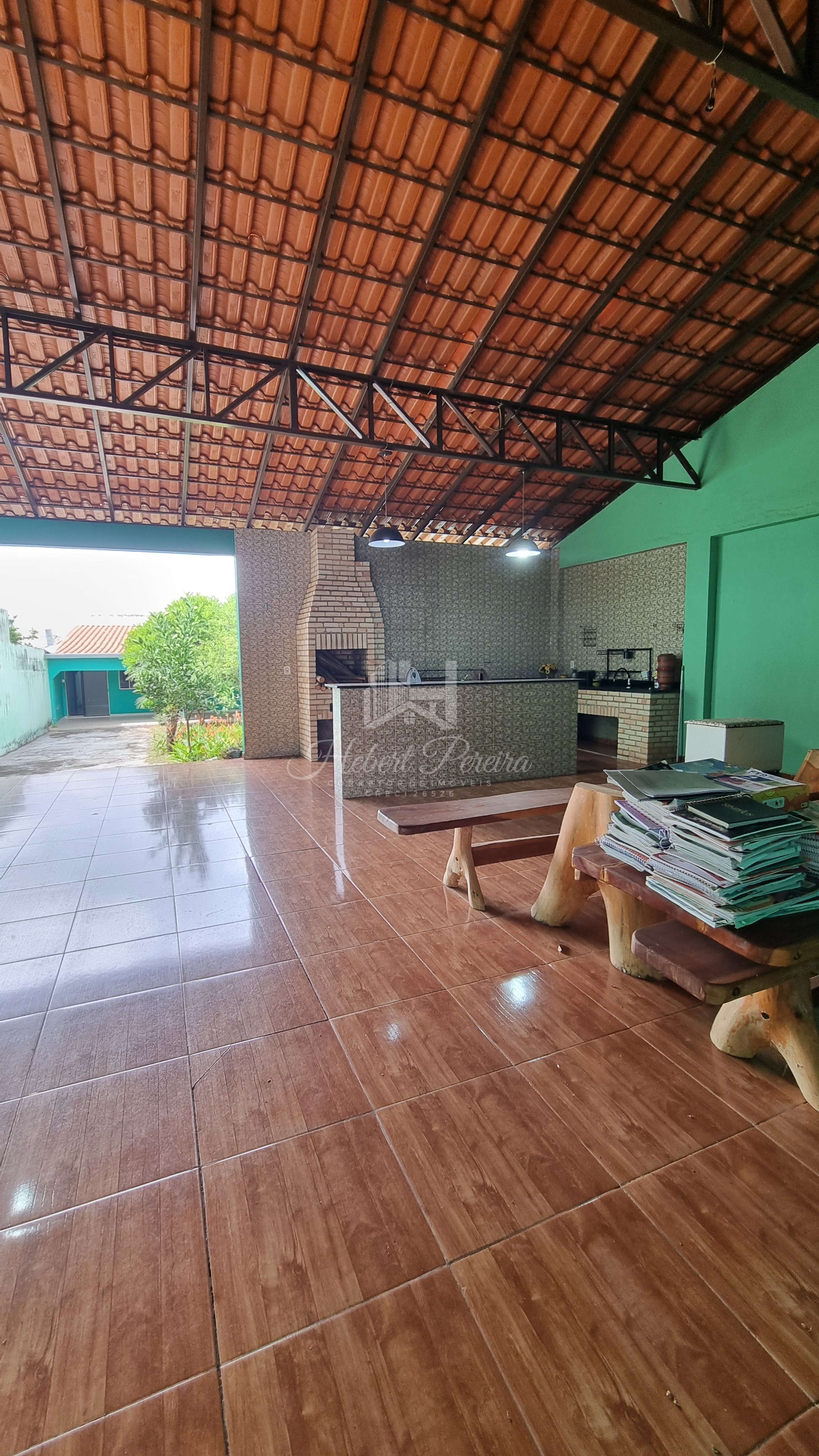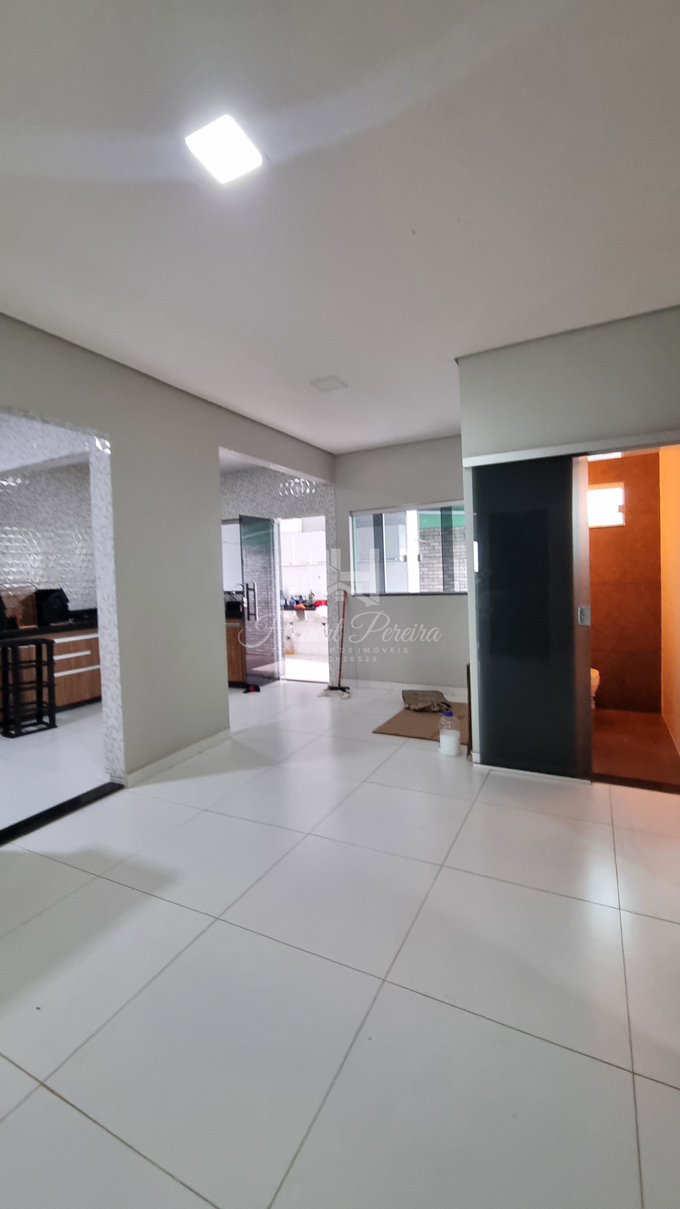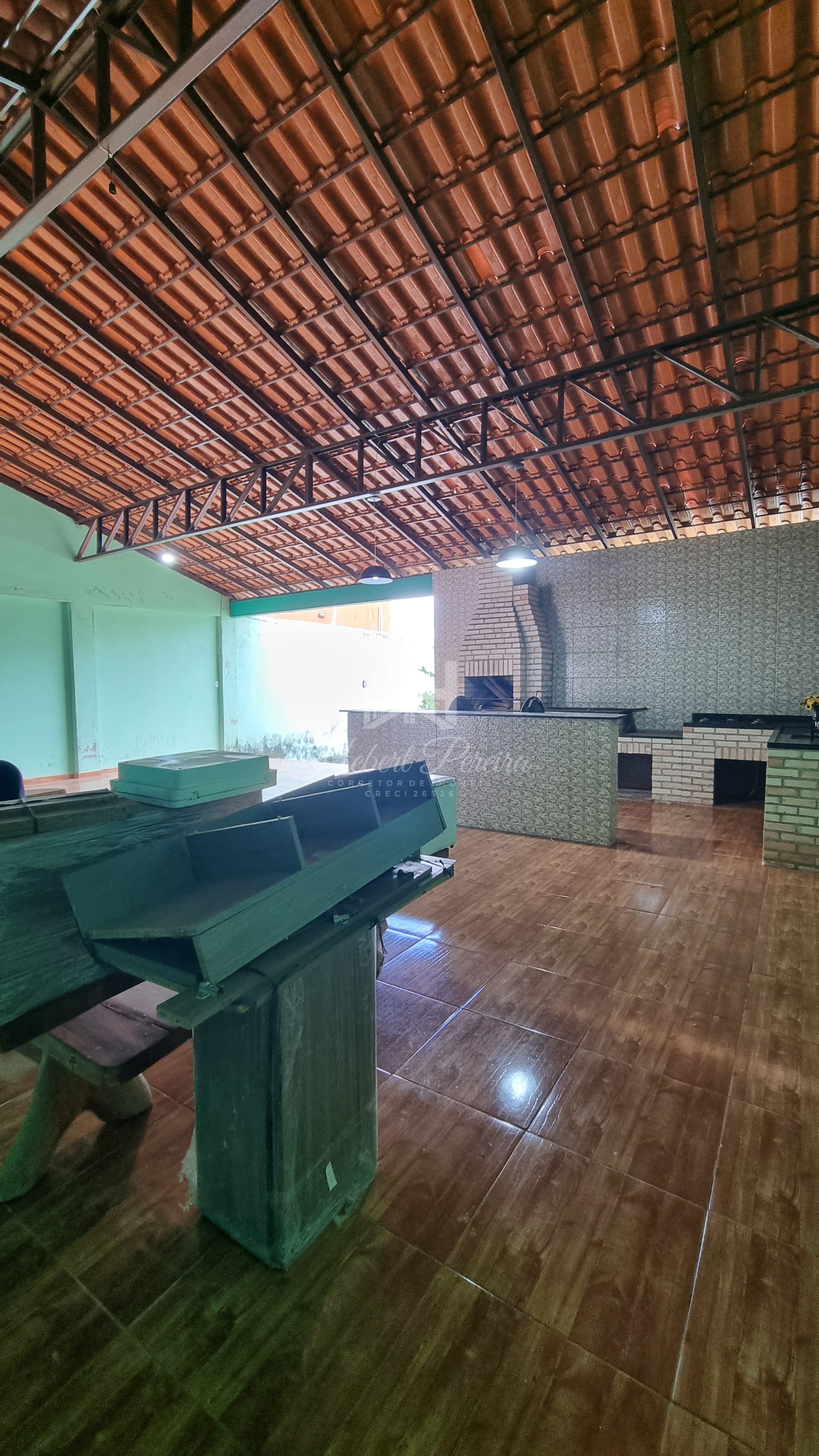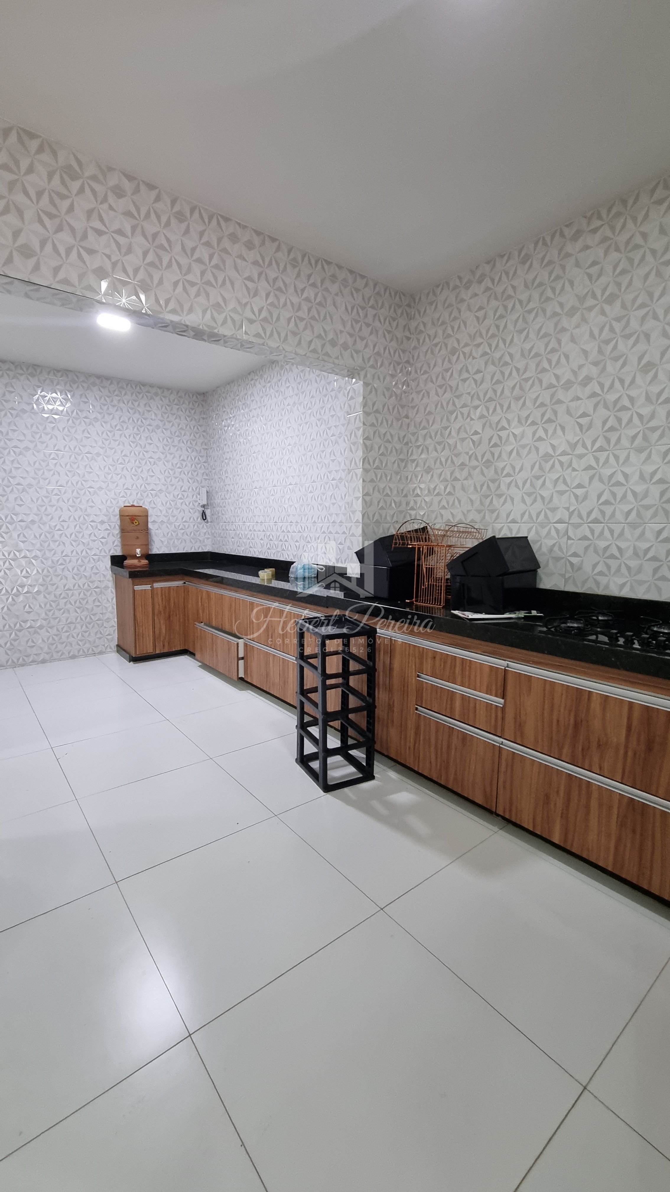 A casa e toda na laje sendo três quartos e duas suítes, cozinha com armários planejados e bancada integrada a sala de jantar e sala de tv, quartos amplos e ventilados, projeto de iluminação e piso porcelanato, varanda frontal e espaço livre para um projeto com piscina.