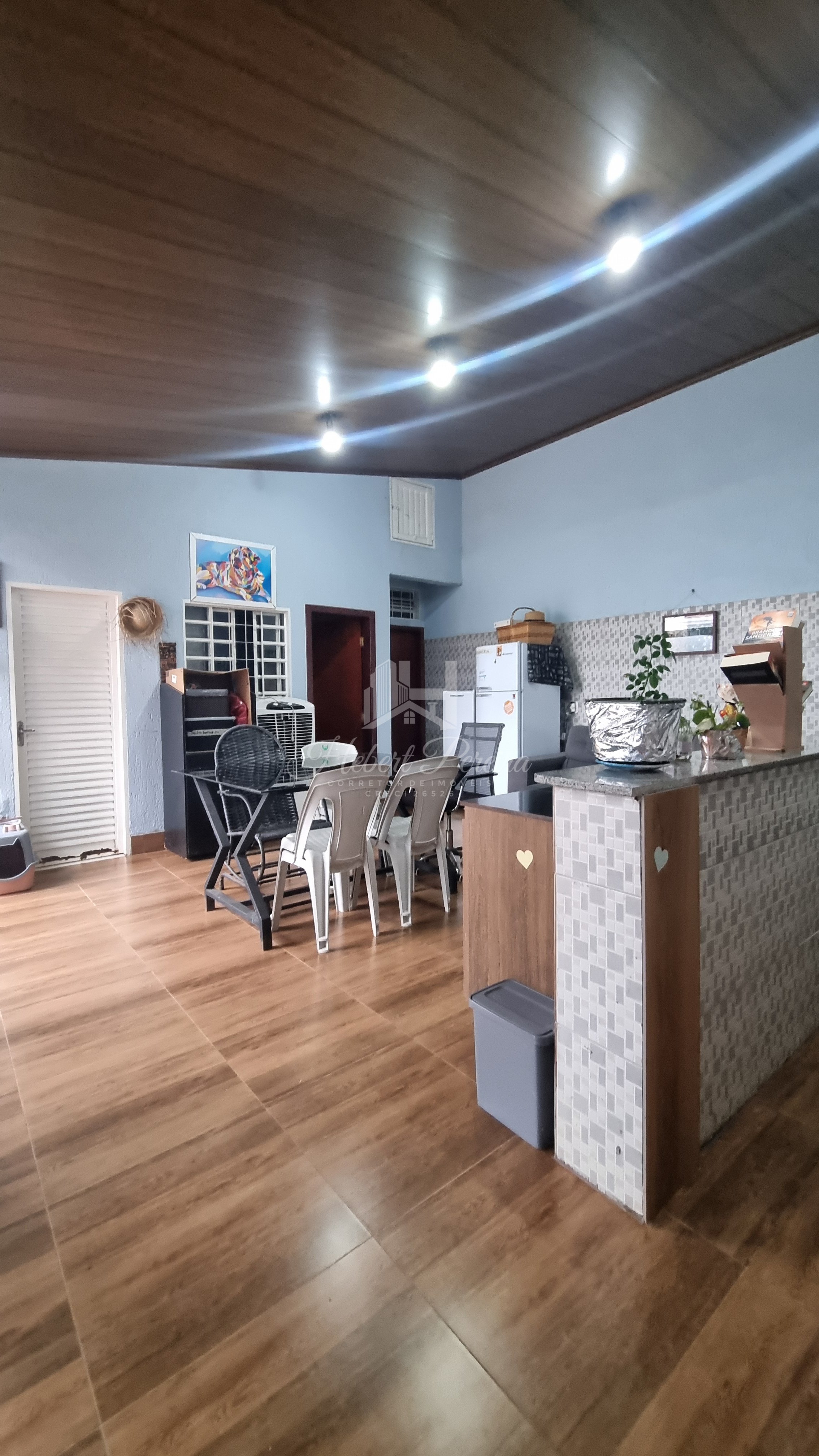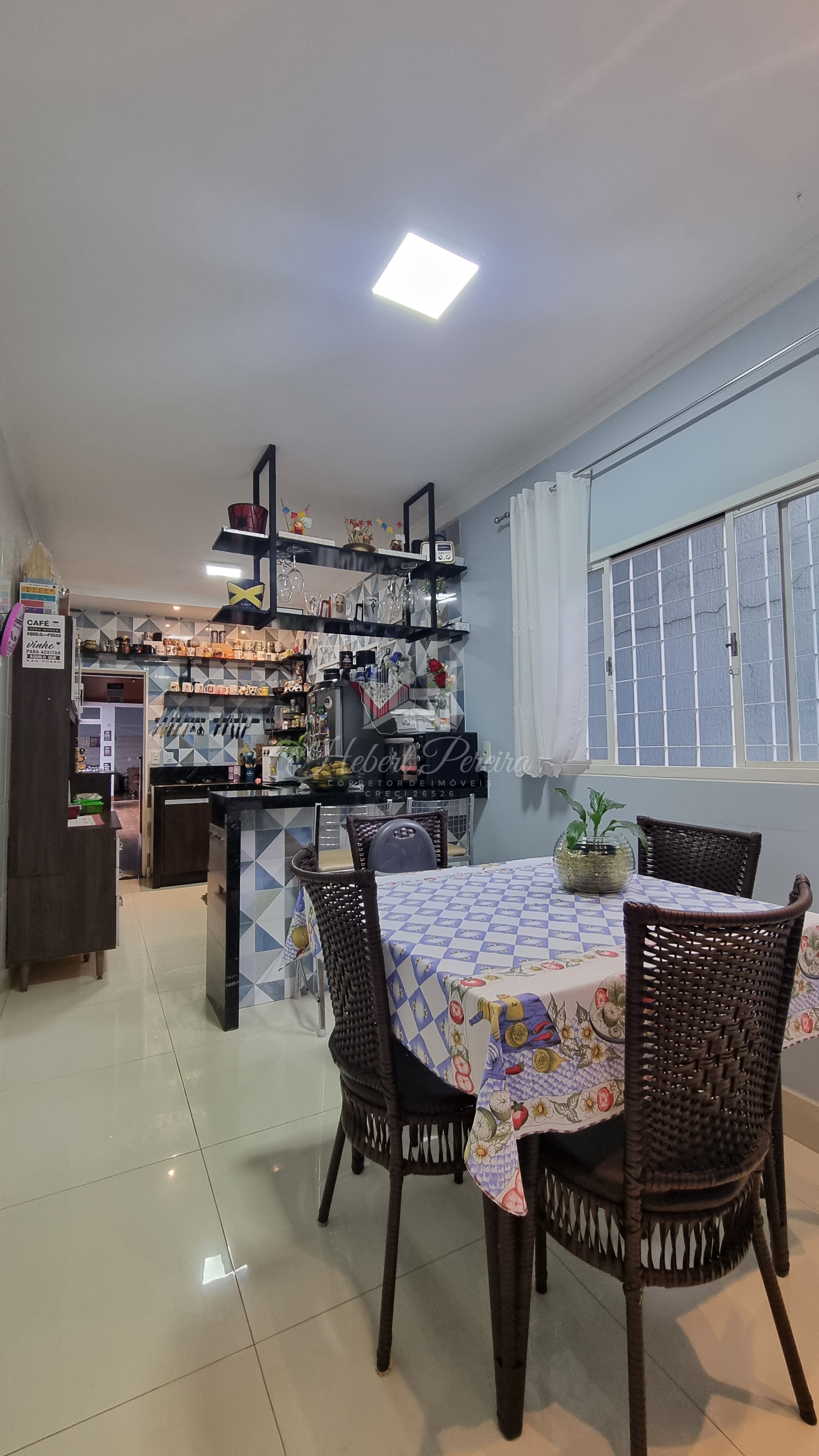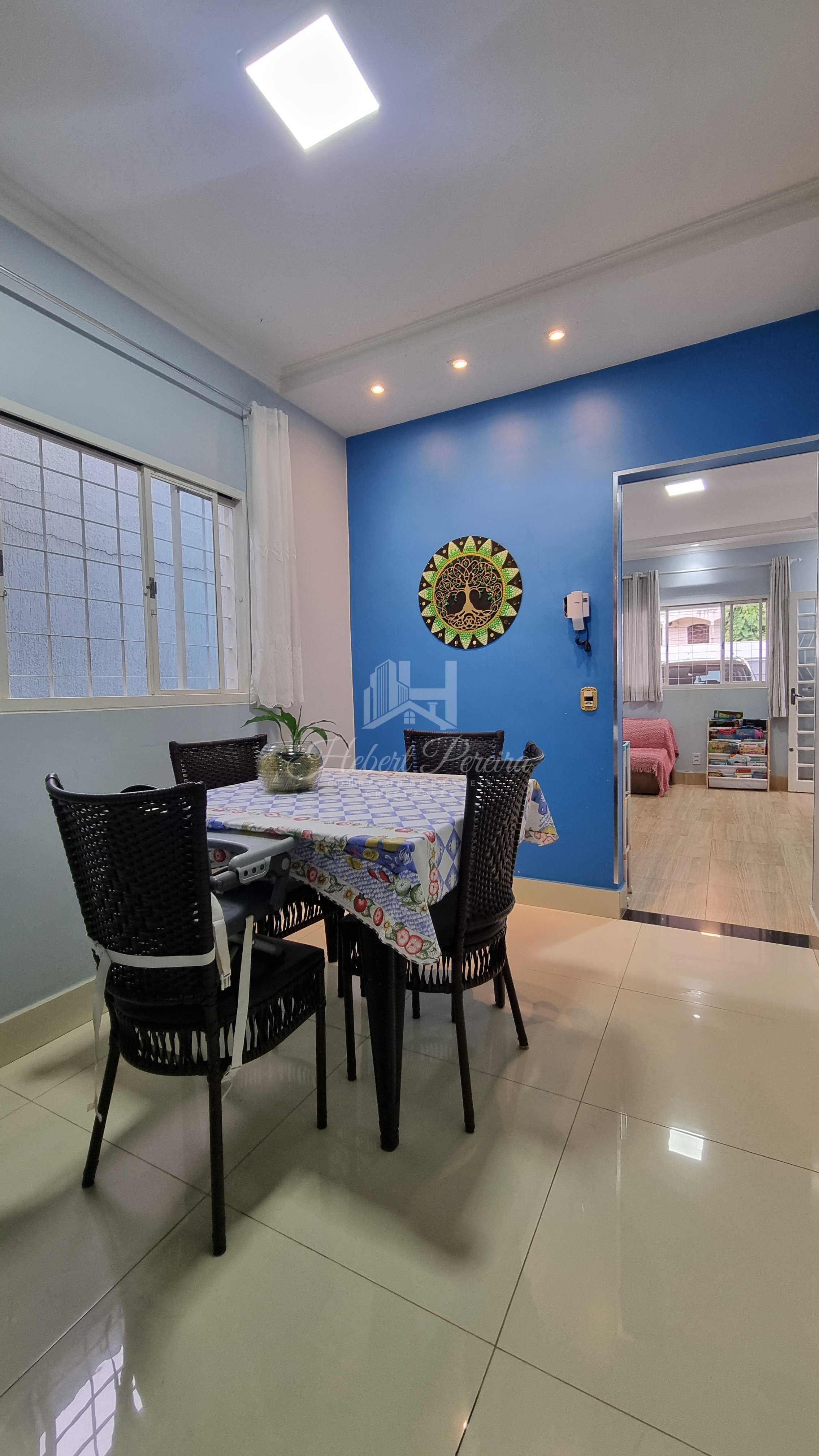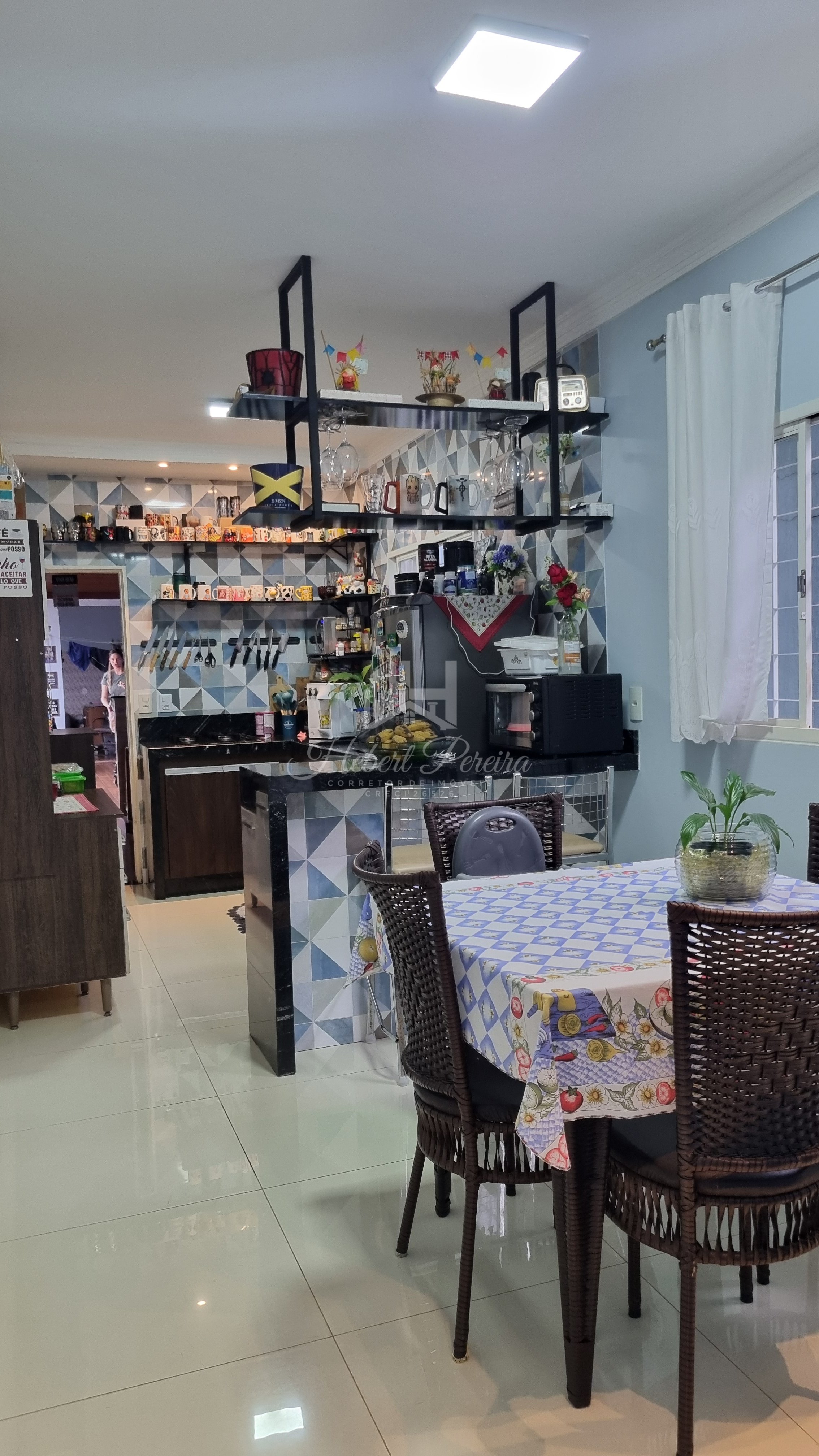 Casa solta no lote e toda na laje. Com três quartos sendo um suíte com armário planejado e bancada de estudos, banheiro social amplo, sala de jantar integrada a cozinha com bancada e armários planejados.