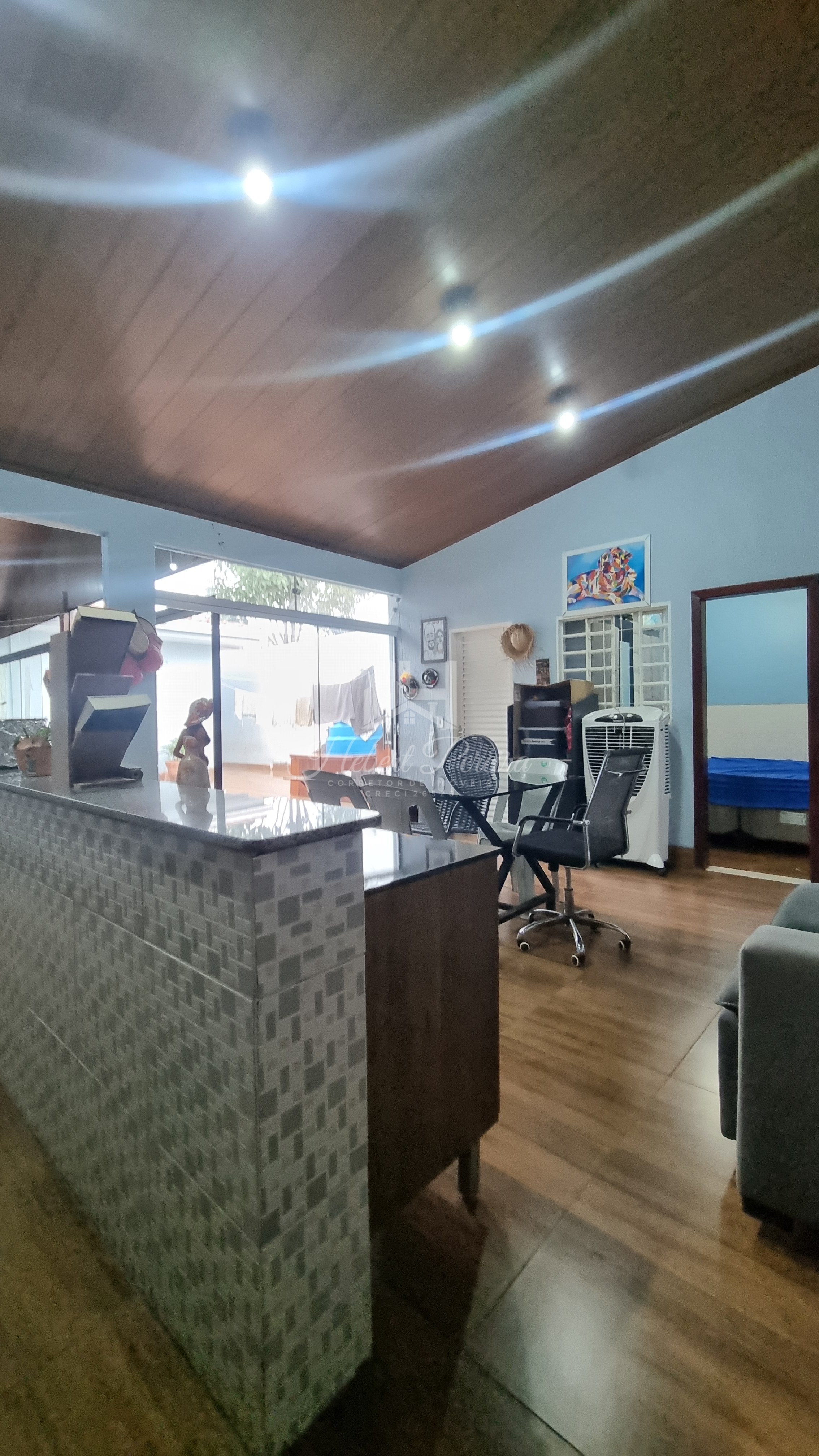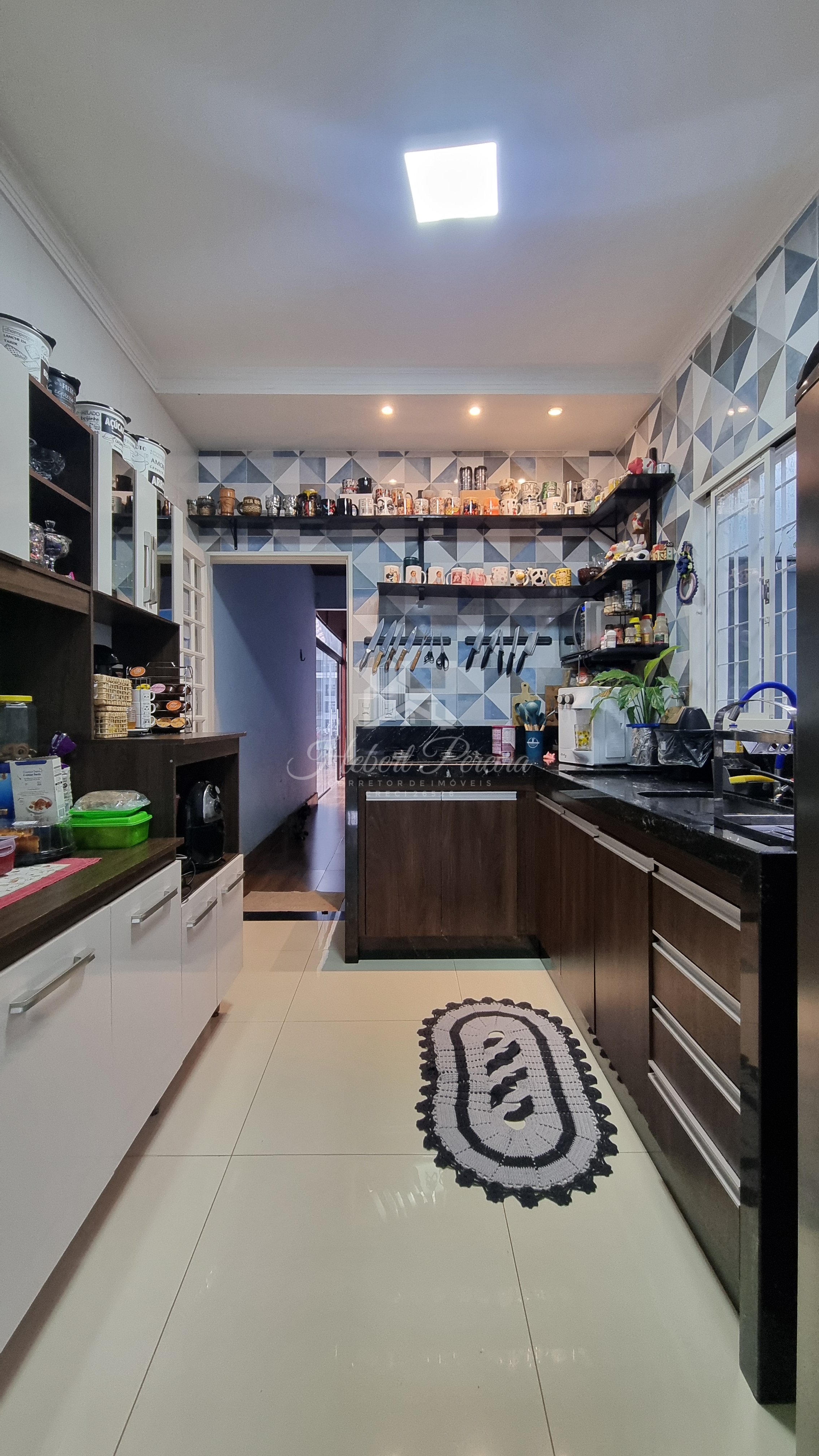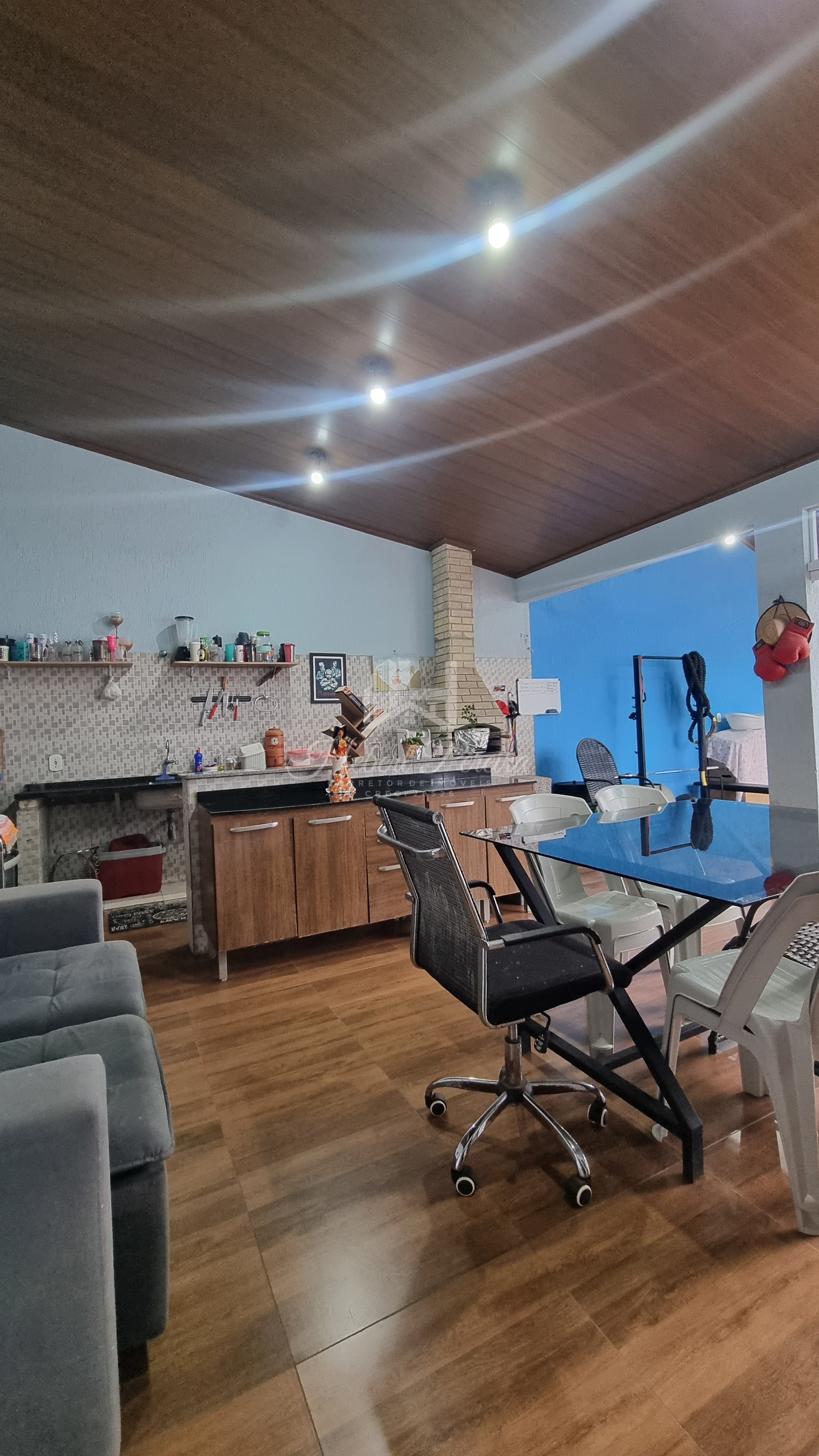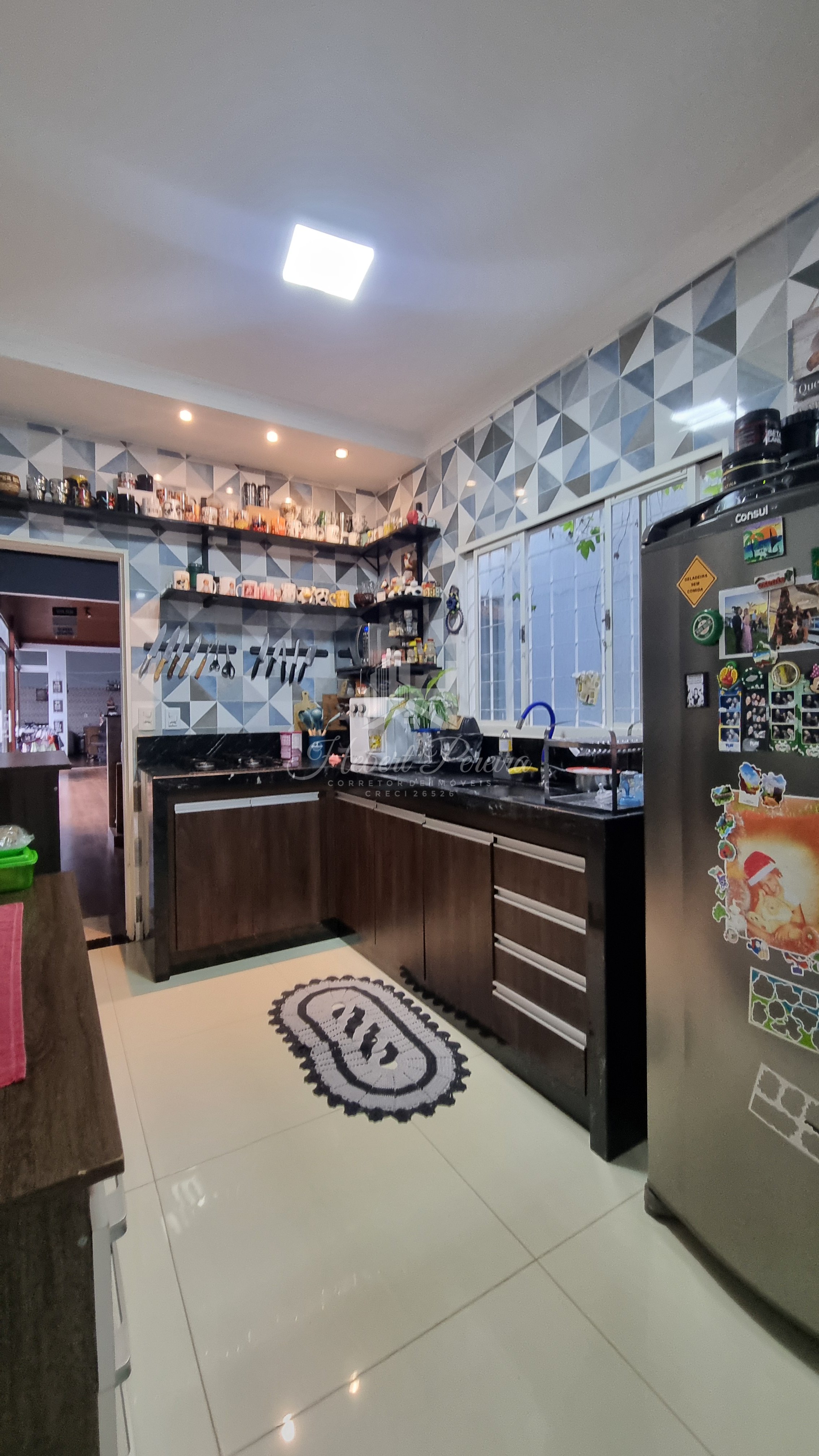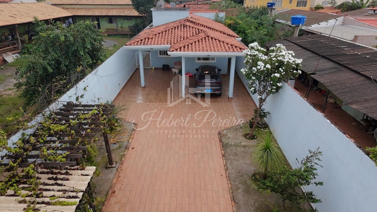 Casa solta no lote e toda na laje. Com três quartos sendo um suíte com armário planejado e bancada de estudos, banheiro social amplo, sala de jantar integrada a cozinha com bancada e armários planejados.