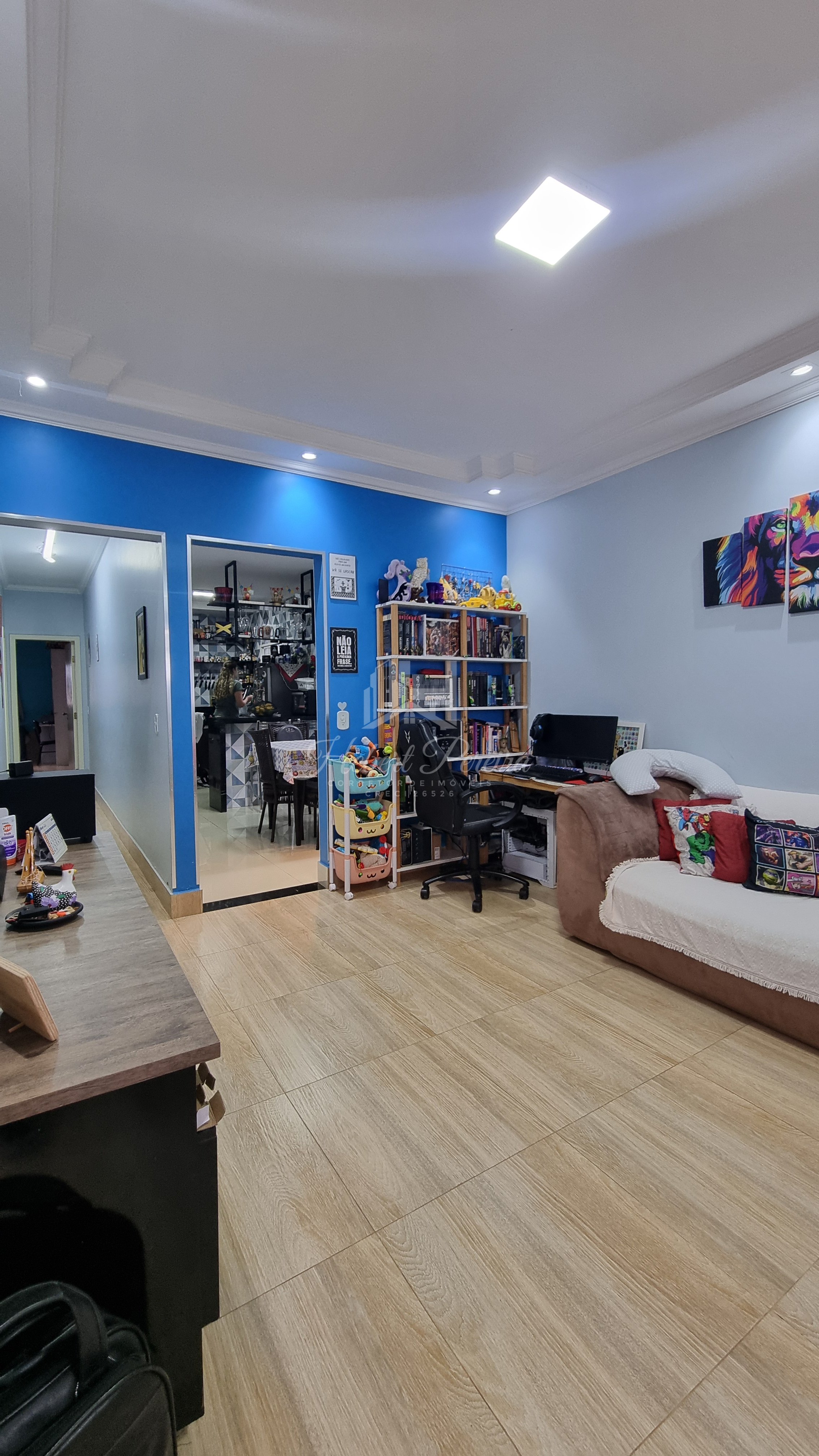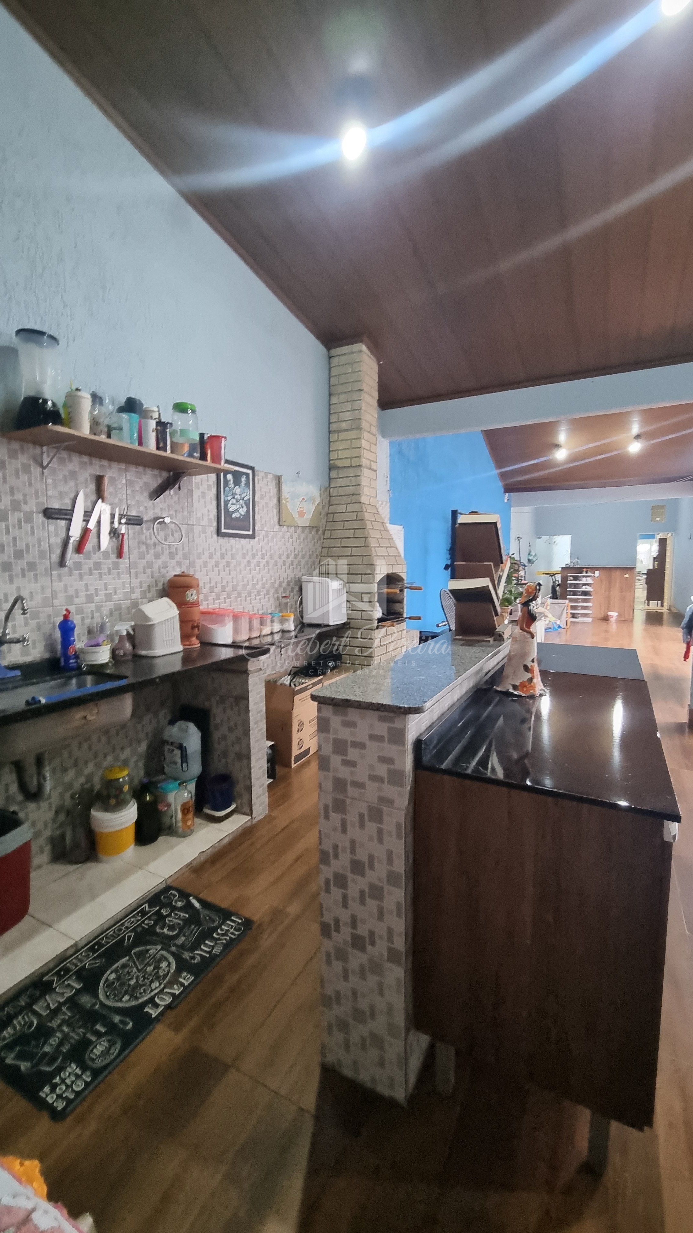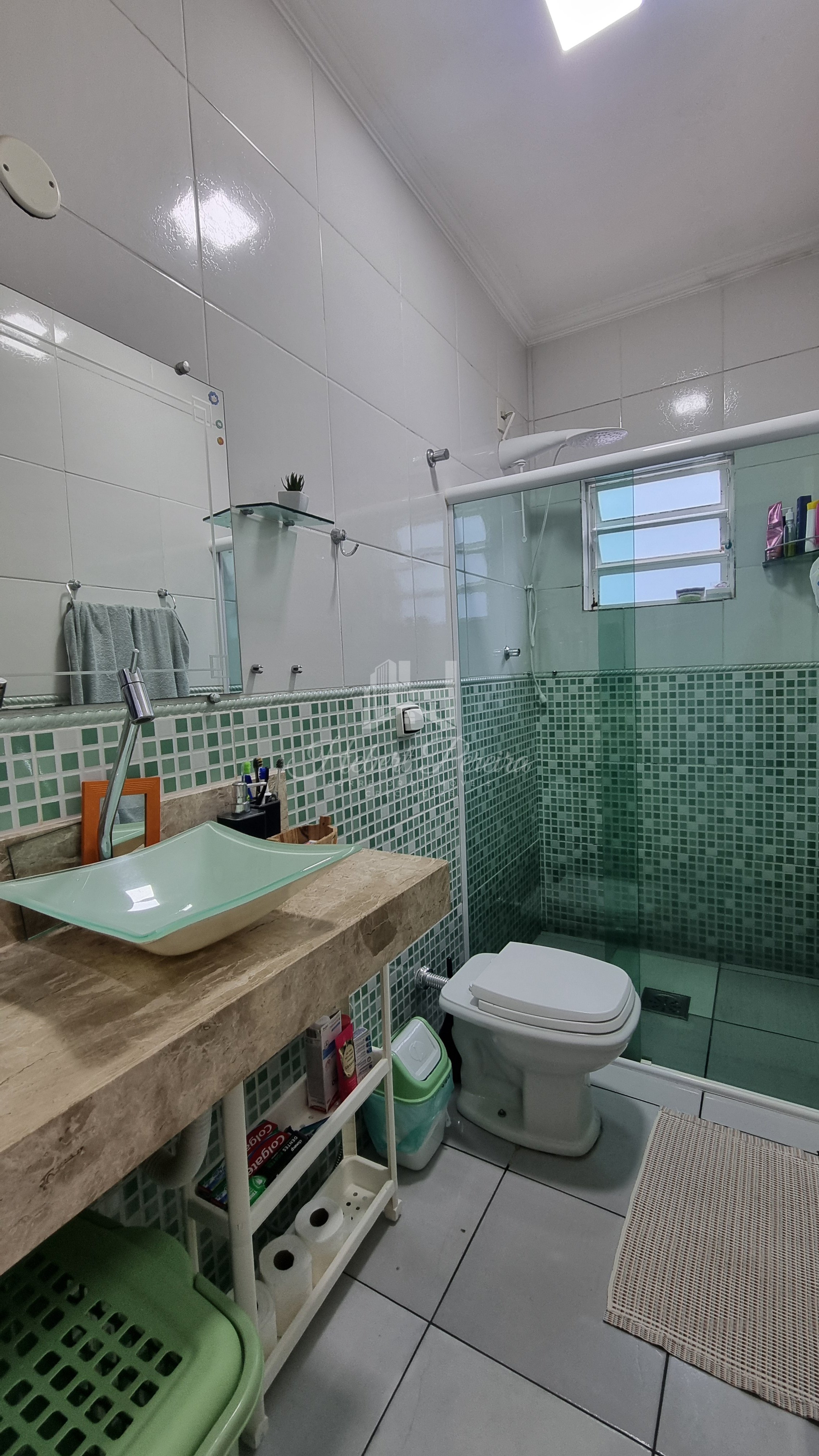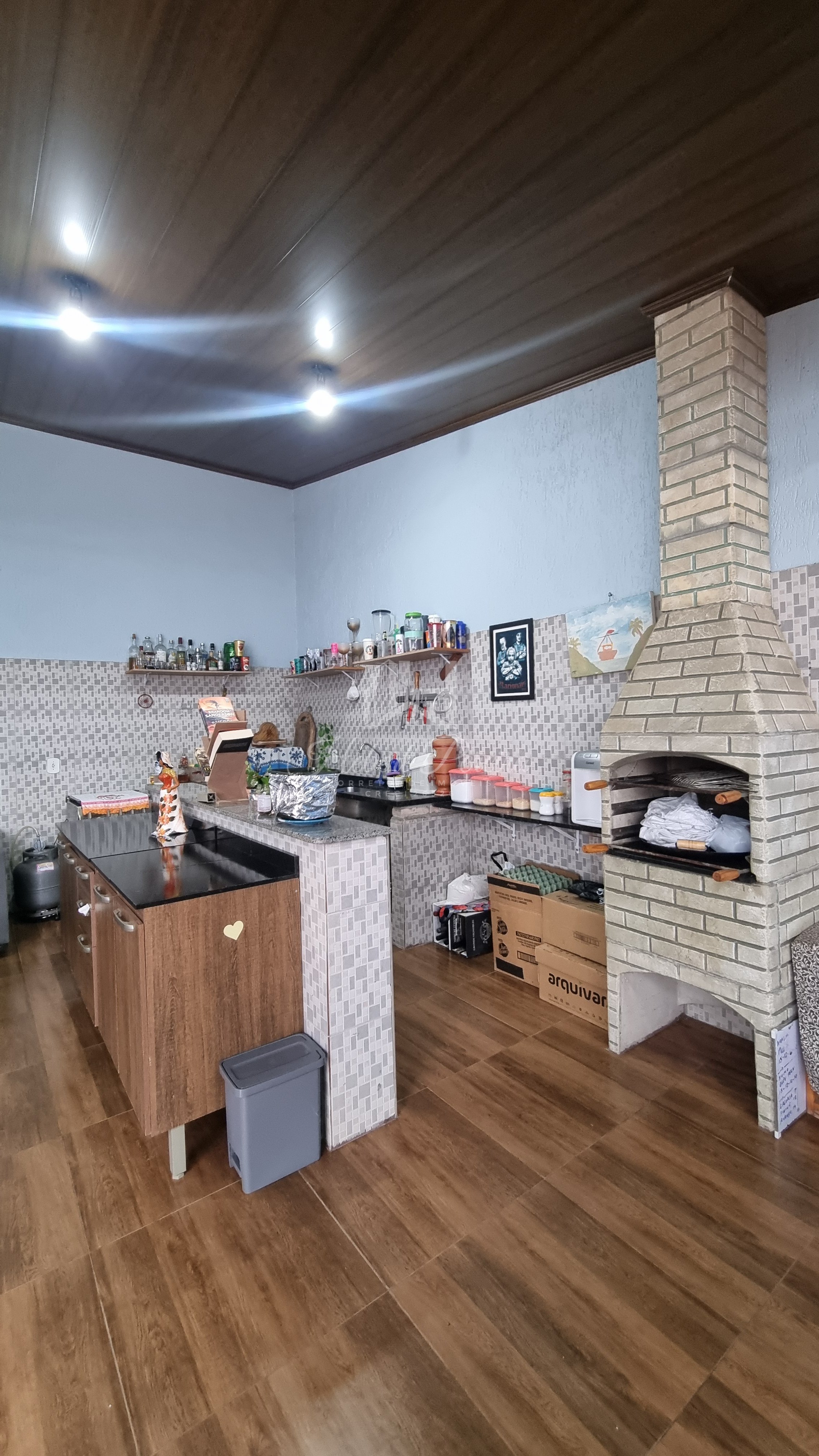 Casa solta no lote e toda na laje. Com três quartos sendo um suíte com armário planejado e bancada de estudos, banheiro social amplo, sala de jantar integrada a cozinha com bancada e armários planejados.