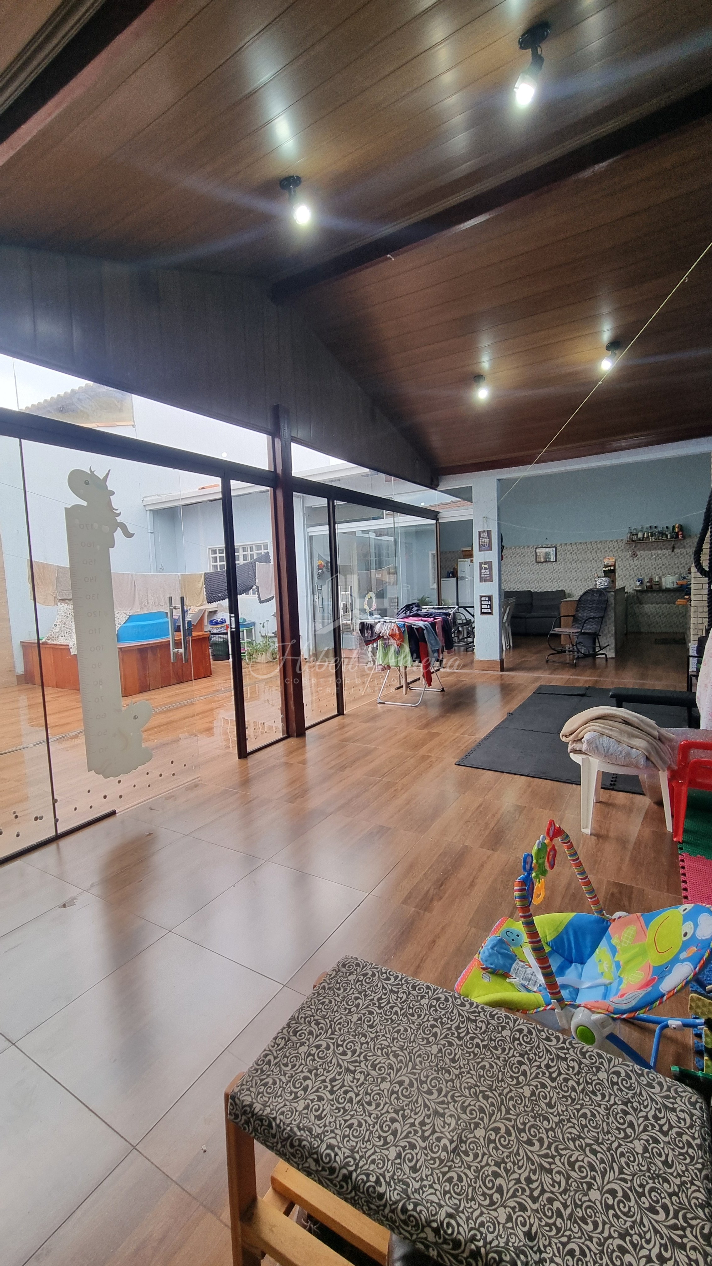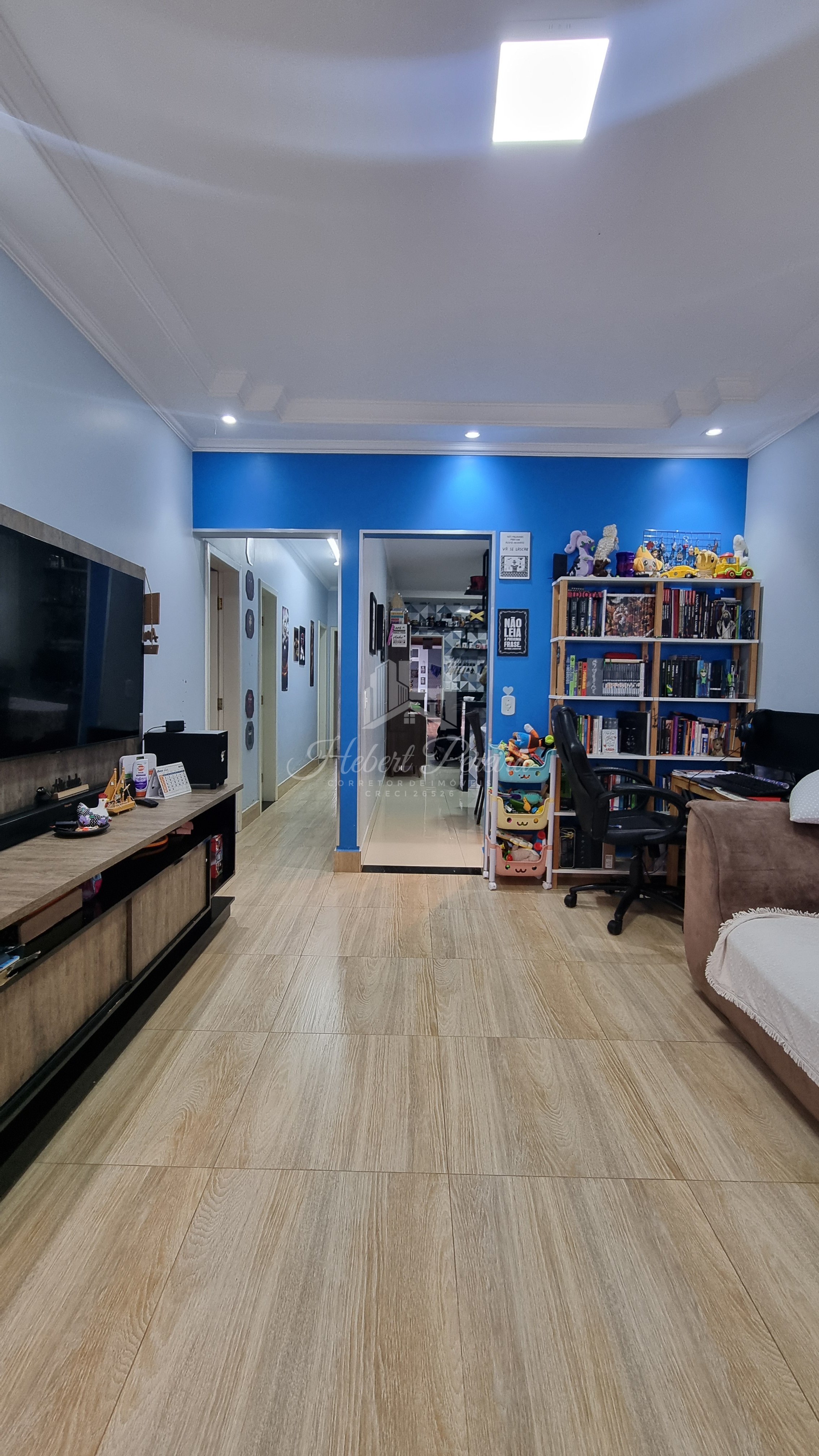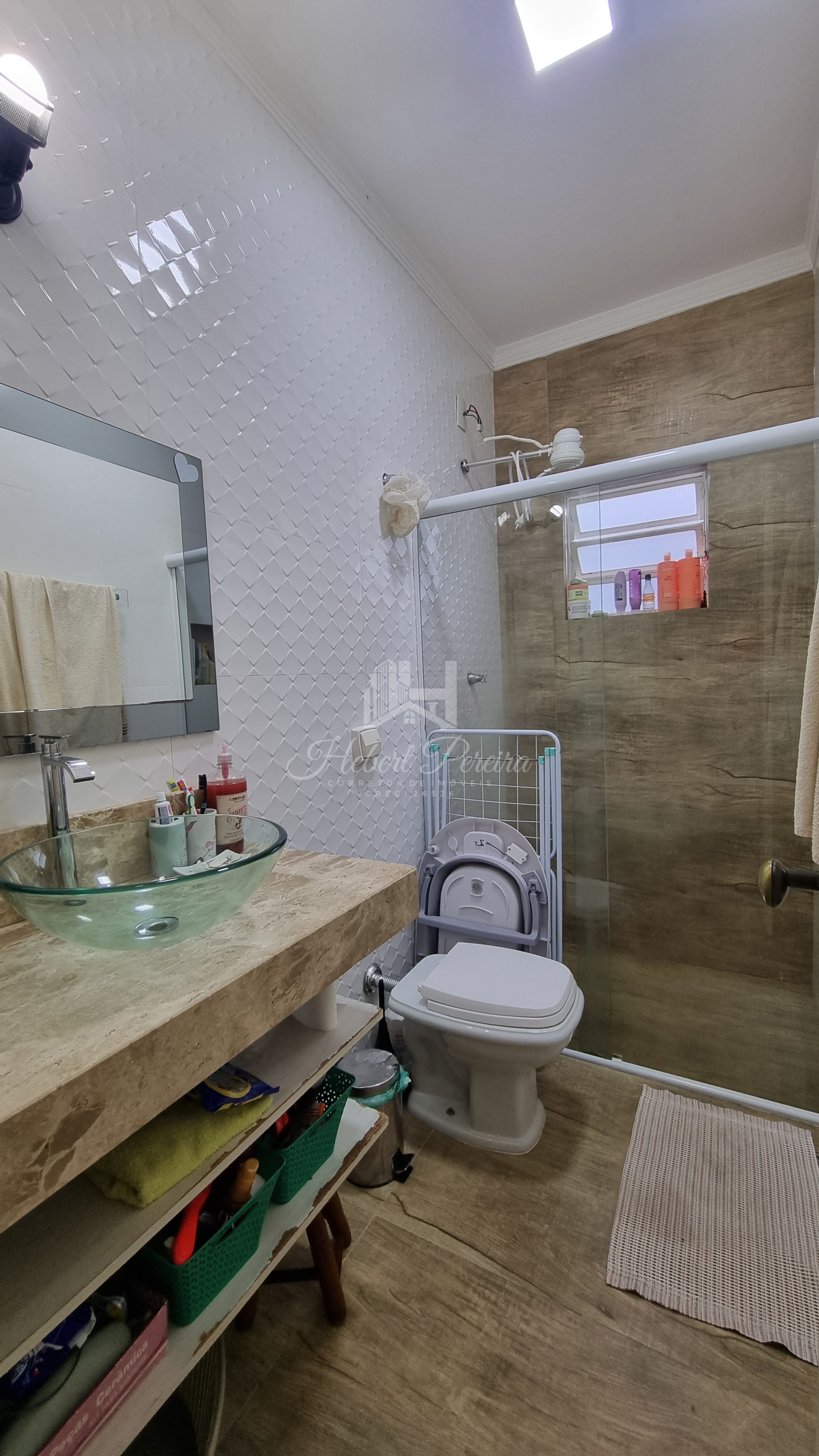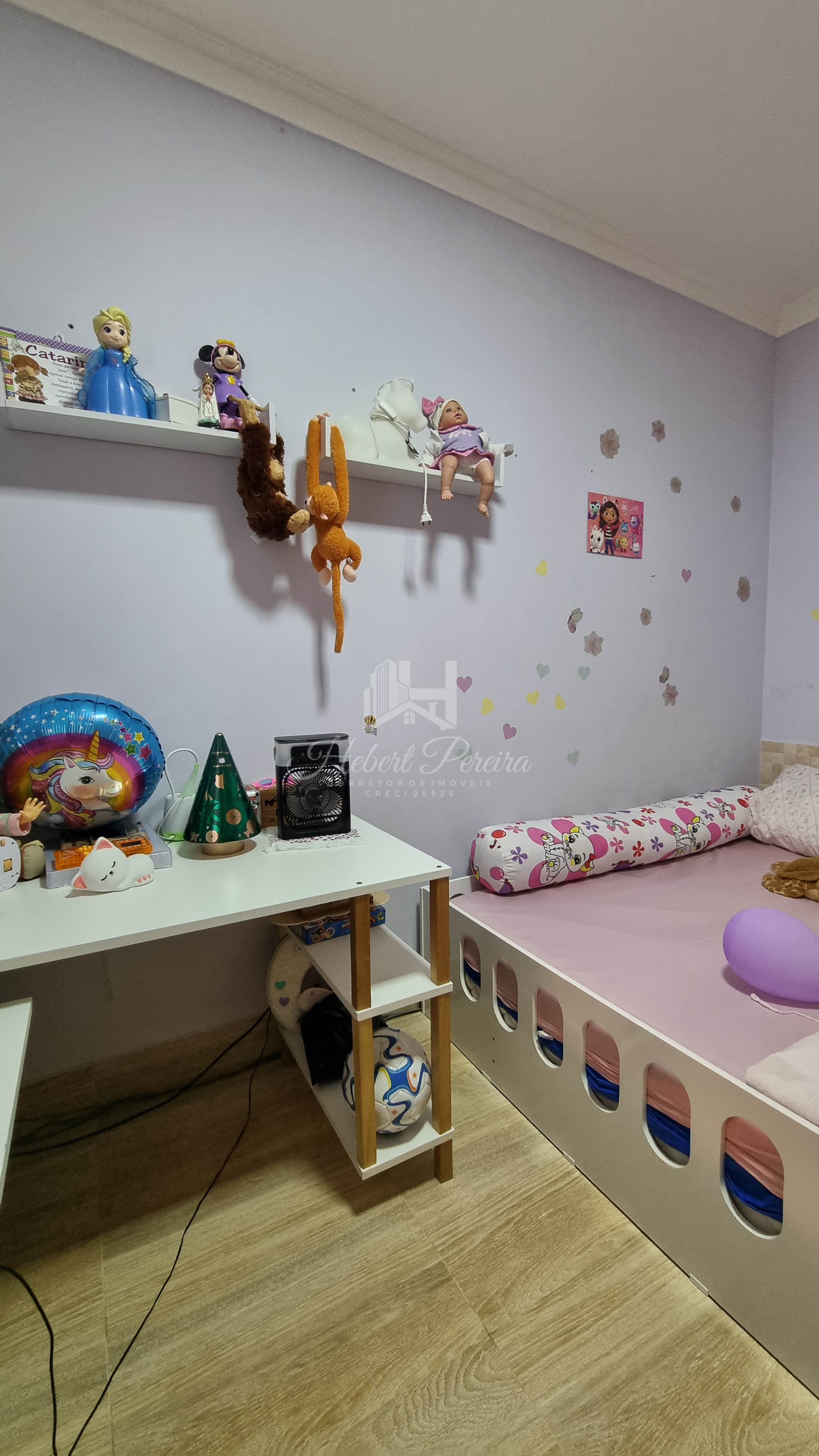 Casa solta no lote e toda na laje. Com três quartos sendo um suíte com armário planejado e bancada de estudos, banheiro social amplo, sala de jantar integrada a cozinha com bancada e armários planejados.