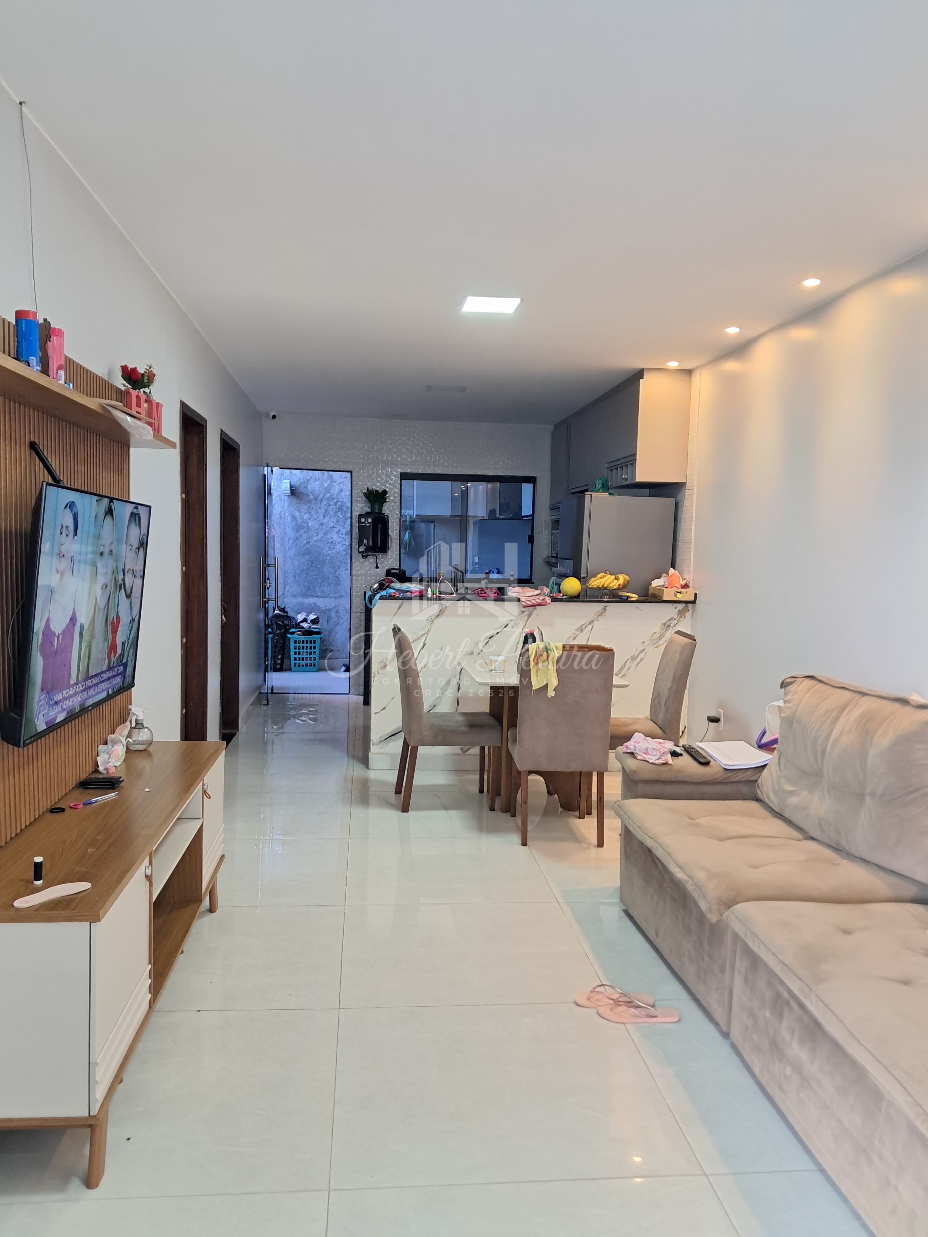 Casa nova e moderna com dois quartos sendo um suíte, acabamento em porcelanato e projeto de iluminação diferenciado. Possui ambientes integrados que garantem praticidade e conforto, ideal para quem busca estilo e funcionalidade em um só lugar.