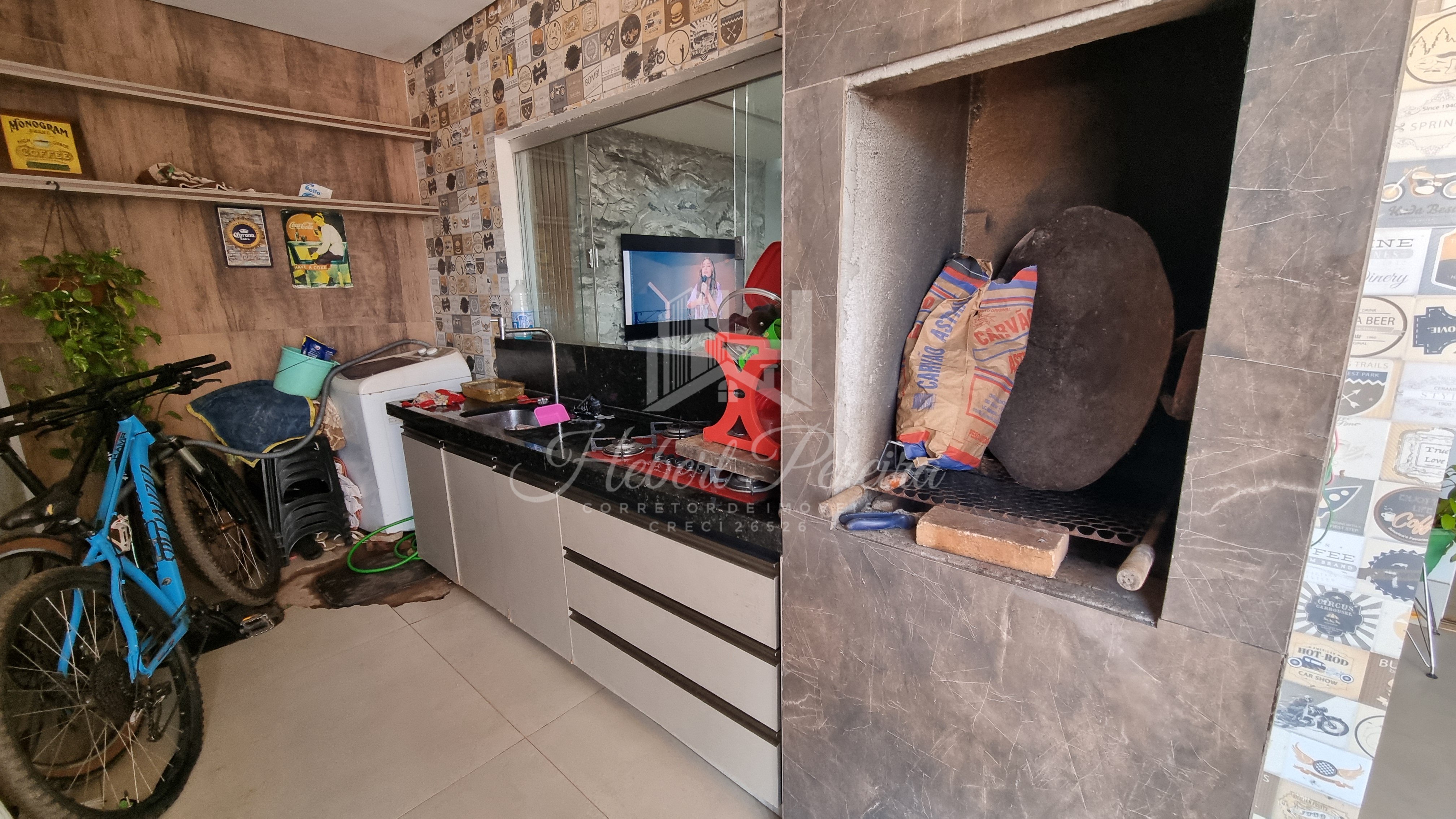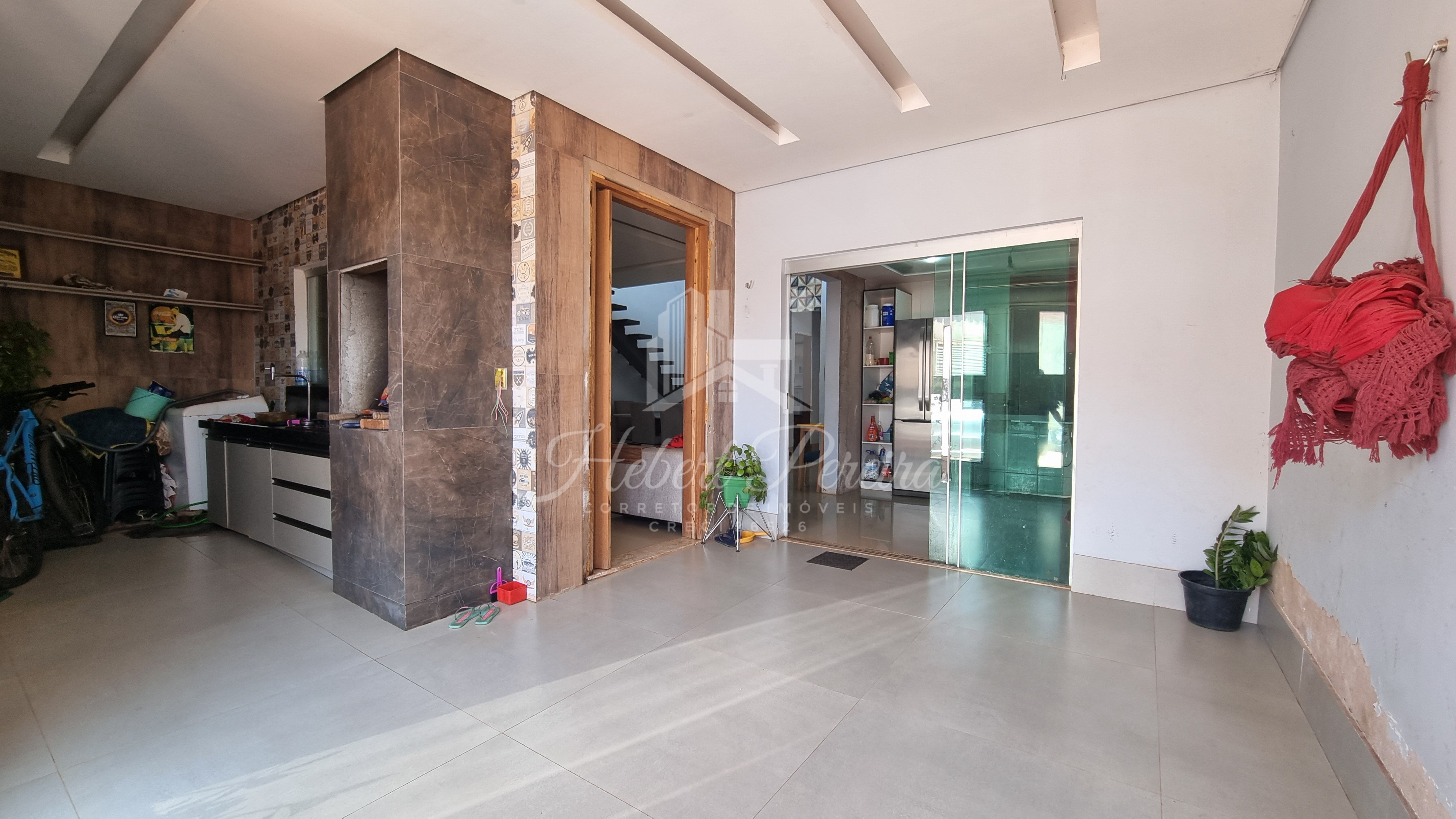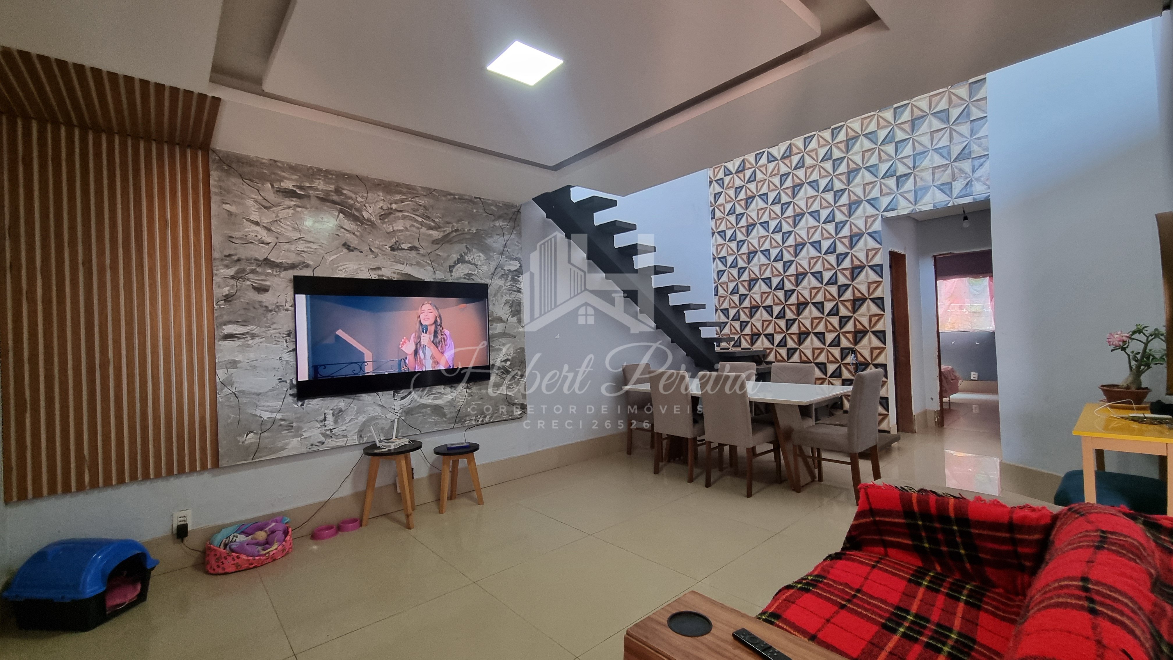 Casa toda no porcelanato, área gourmet com bancada e armários, sala dois ambientes integrada a cozinha com bancada em granito, dois quartos térreo e um superior, cômodos amplos e ventilados.