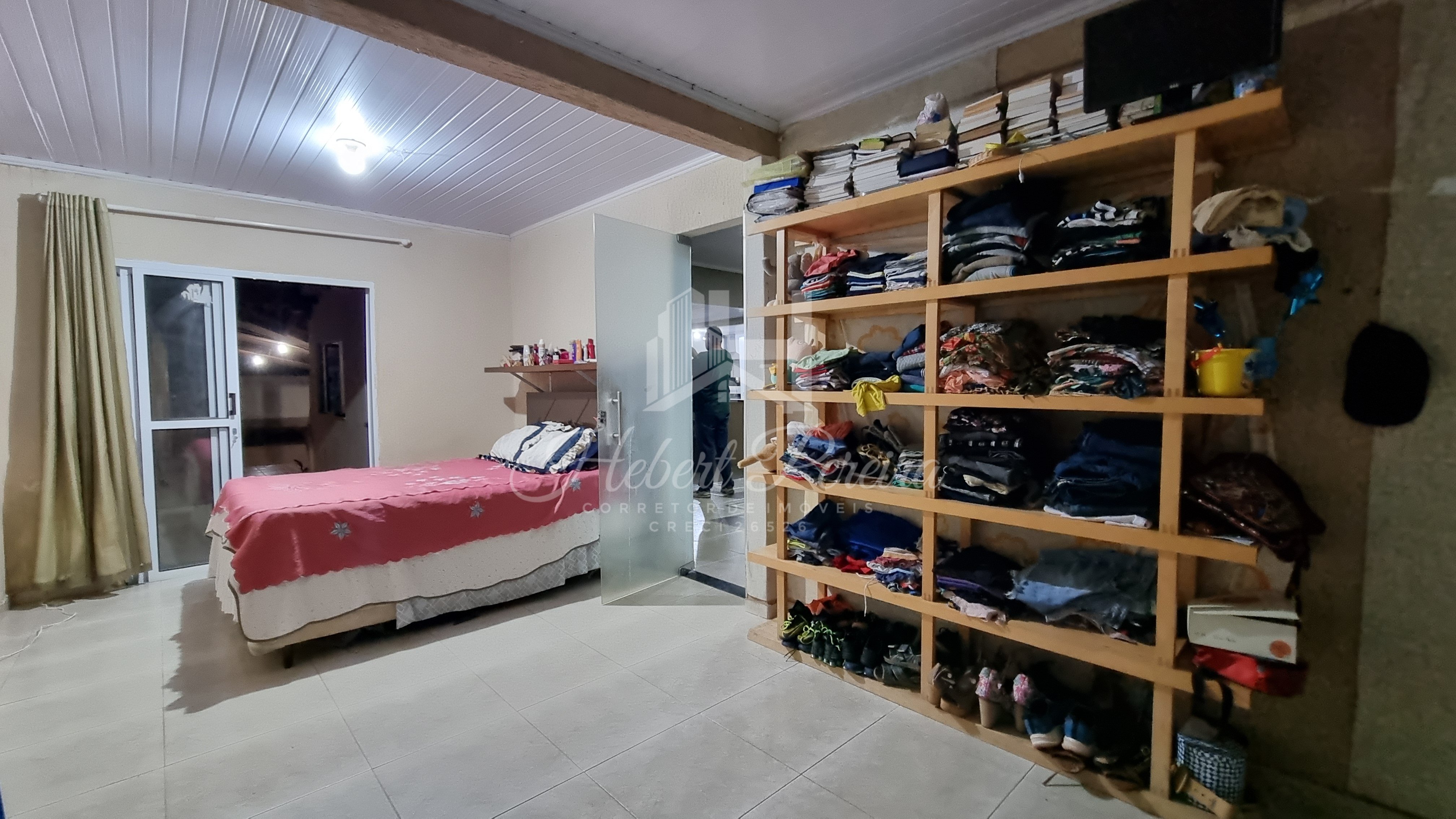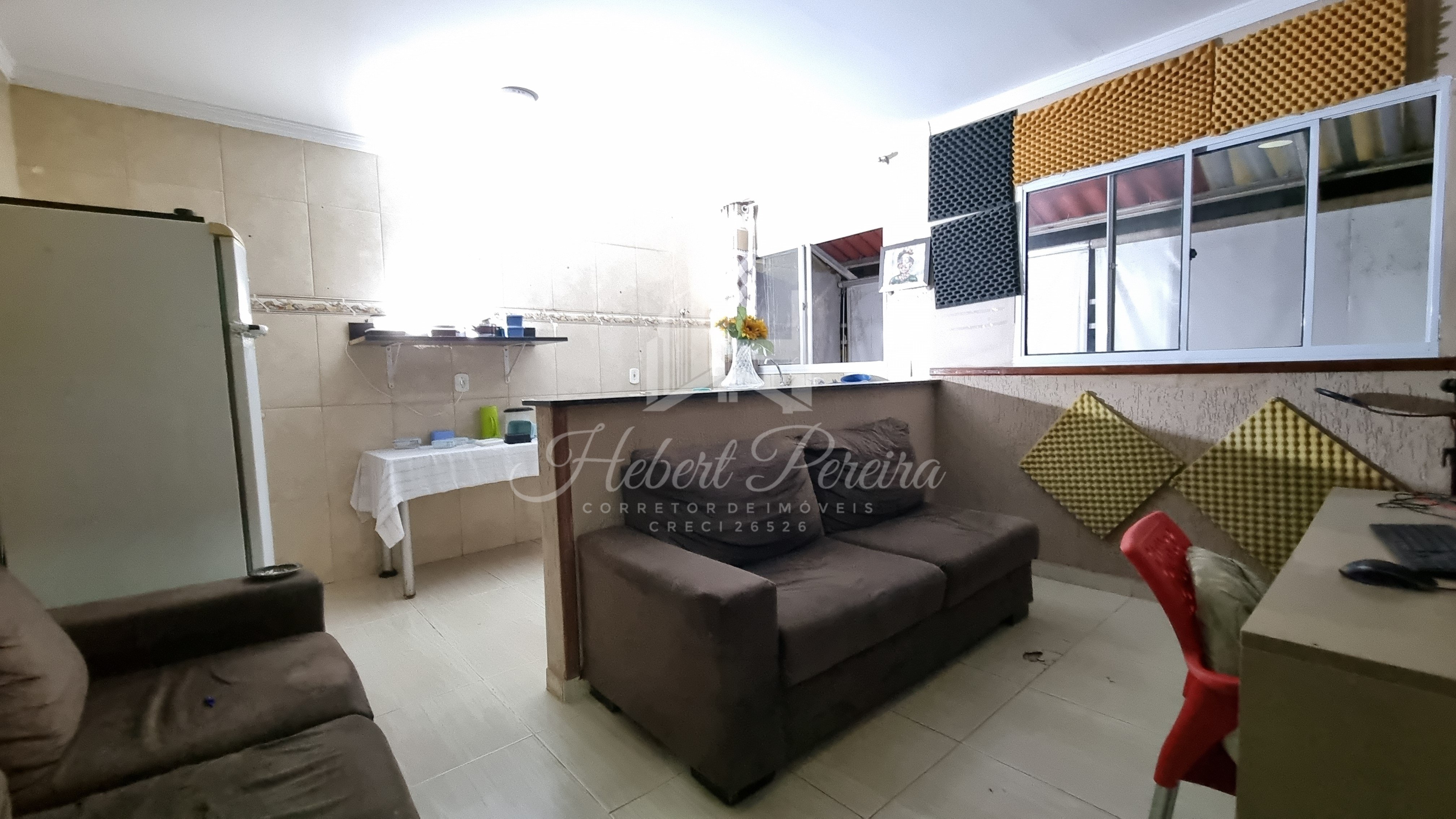 São duas casas no lote com entradas independentes, sendo a primeira na laje com dois quartos e sala integrada a cozinha, varanda e vaga para um veículo.