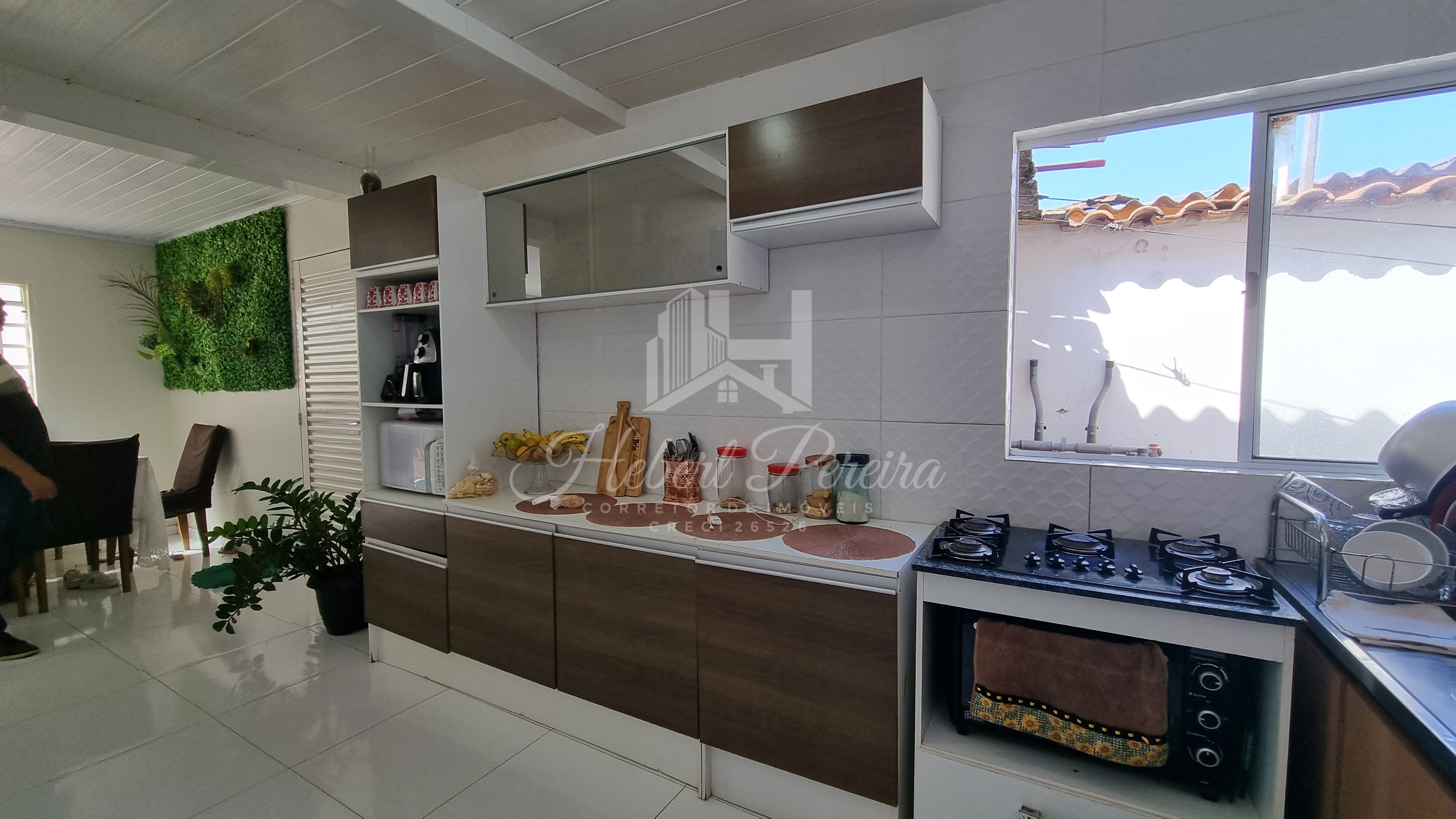 Casa com três quartos amplos sendo um com closet, sala dois ambientes, cozinha com bancada e garagem para até quatro veículos.